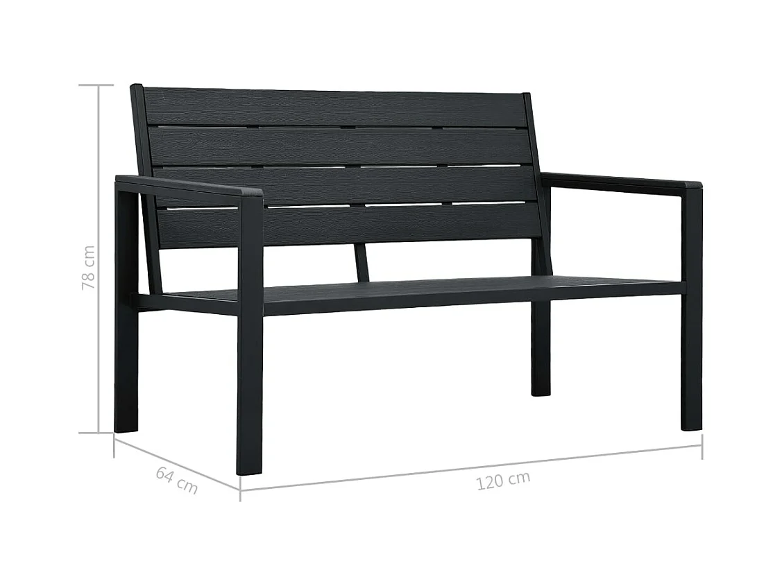 Banco de jardín Muebles de exterior para terraza terraza 120 cm negro HDPE aspecto madera 02_0011206
