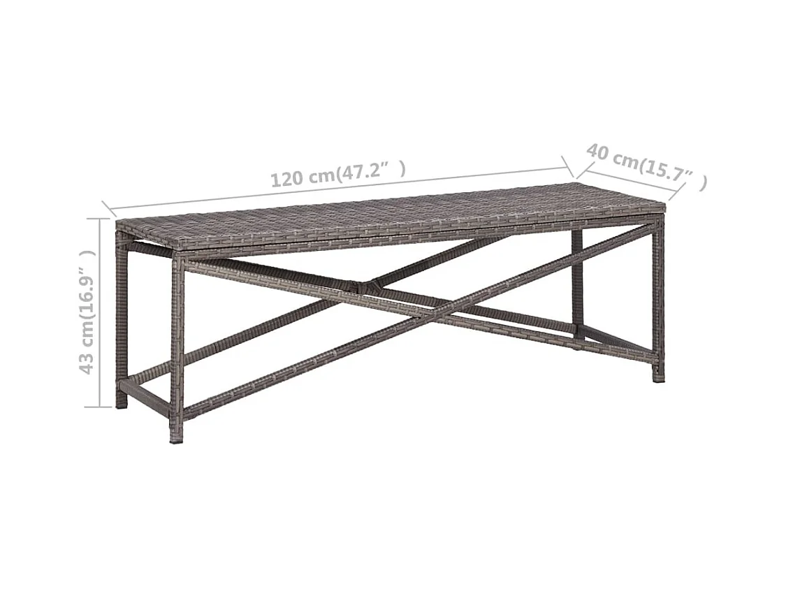 Banco de jardín muebles de exterior para terraza terraza 120 cm resina tejida gris 02_0011207