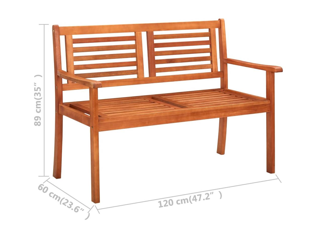 Banco de jardín Muebles de exterior para terraza terraza de 2 plazas 120 x 60 x 89 cm madera maciza de eucalipto 02_0011279