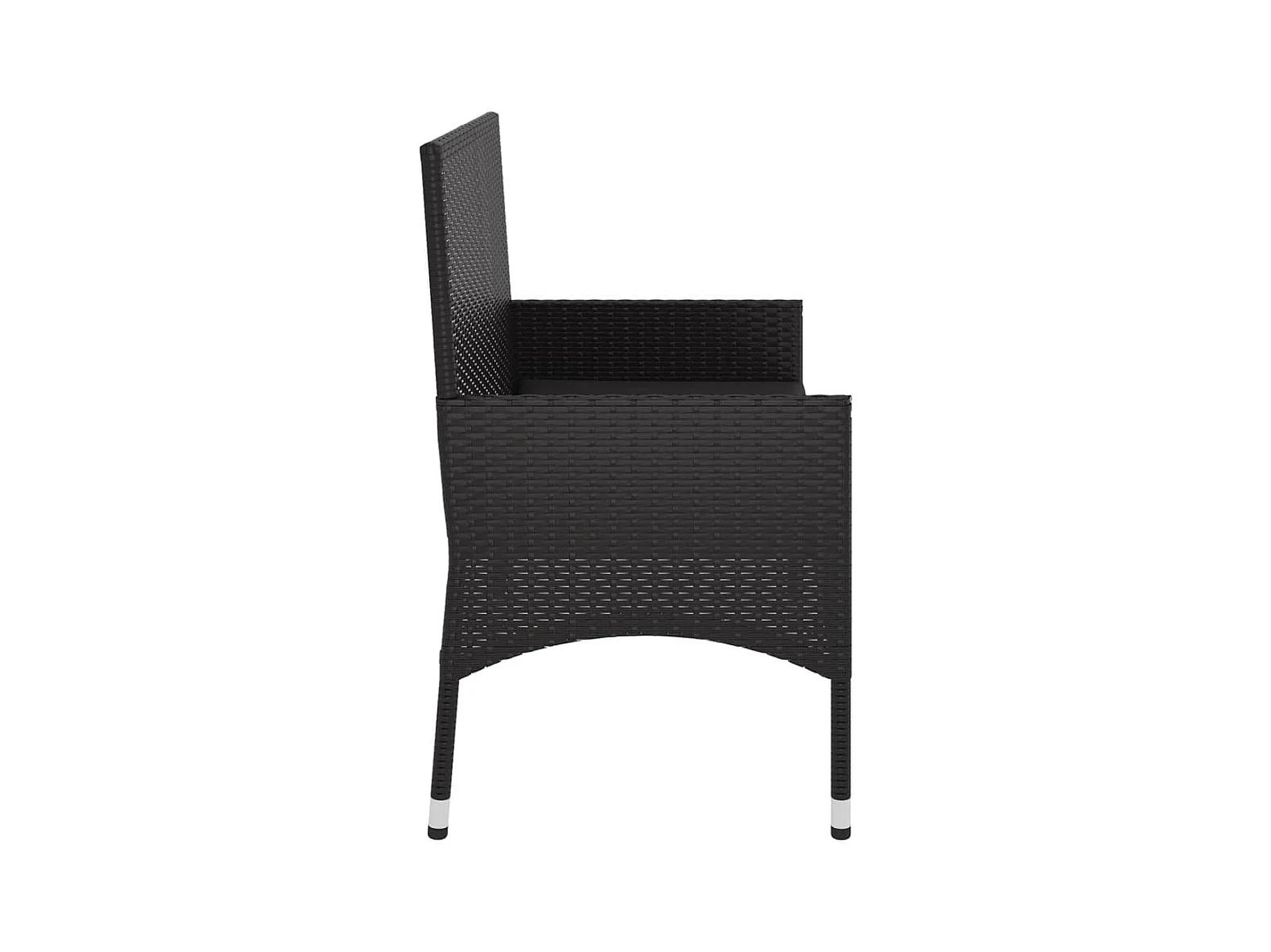 Banco de jardín muebles de exterior terraza de 2 plazas con cojines de resina tejida en negro 02_0011779
