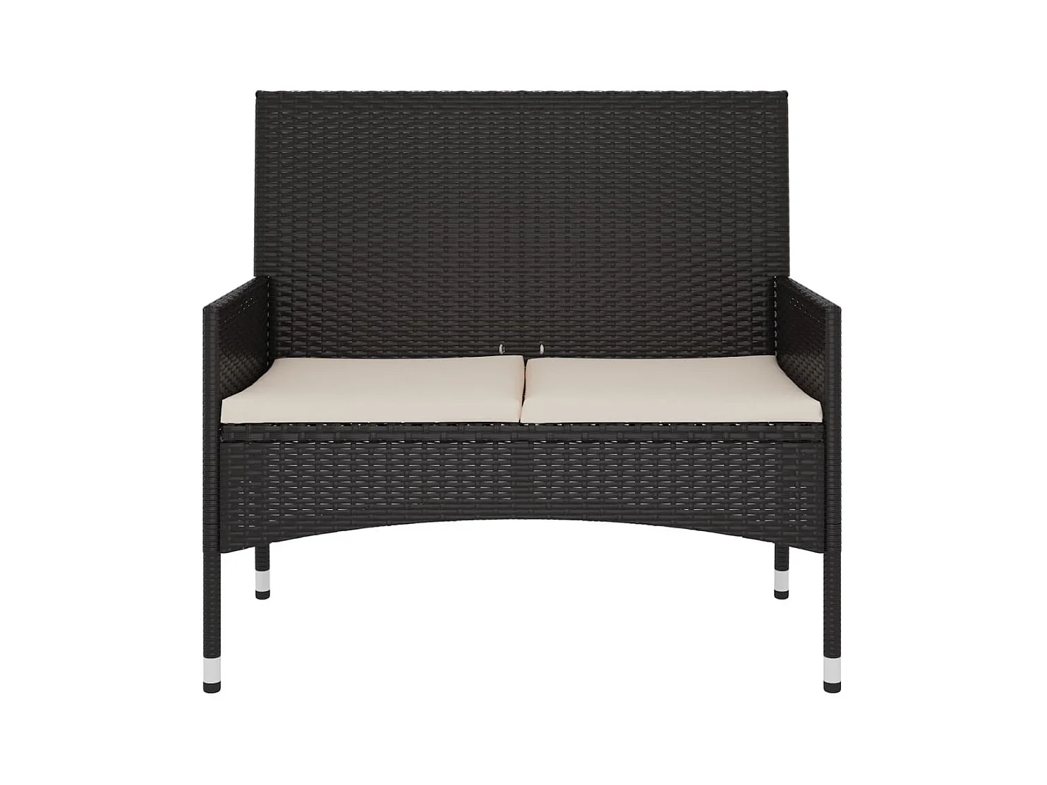 Banco de jardín muebles de exterior terraza de 2 plazas con cojines negros resina tejida 02_0011778
