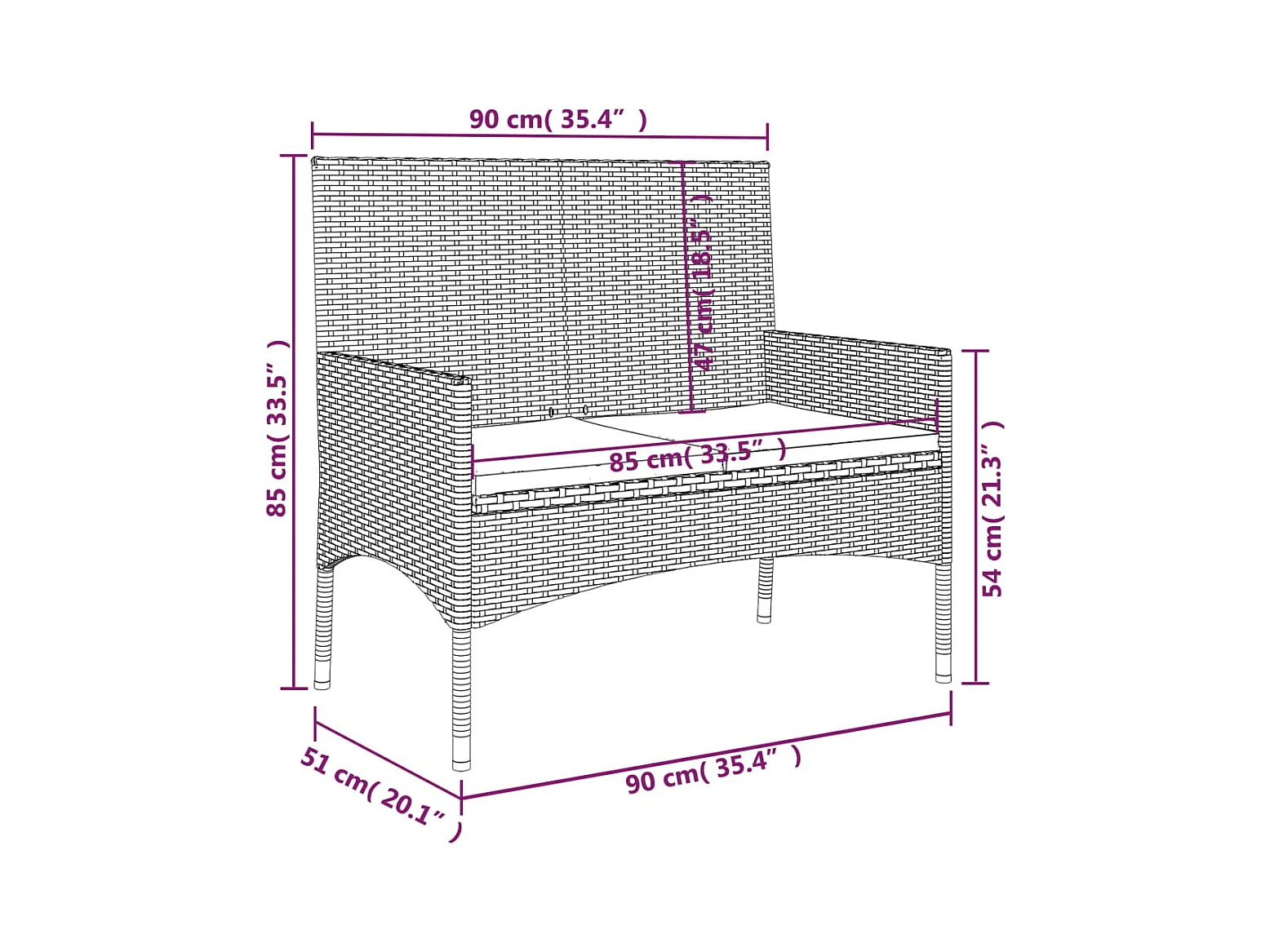 Banco de jardín Muebles de exterior para terraza de 2 plazas y mesa de té 143 x 65 x 88 cm resina tejida negra 02_0011311