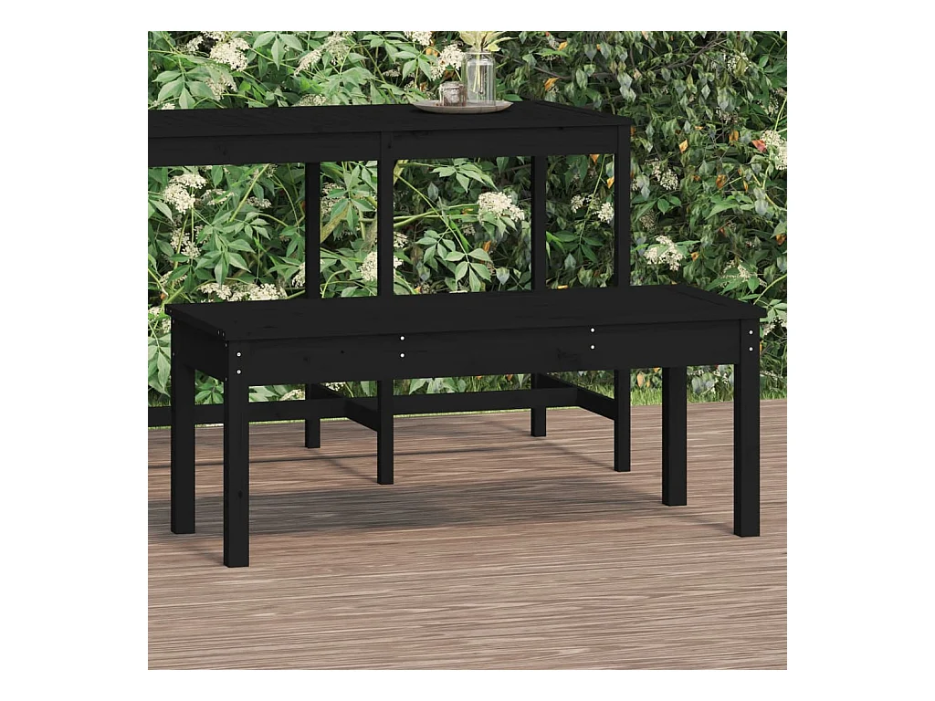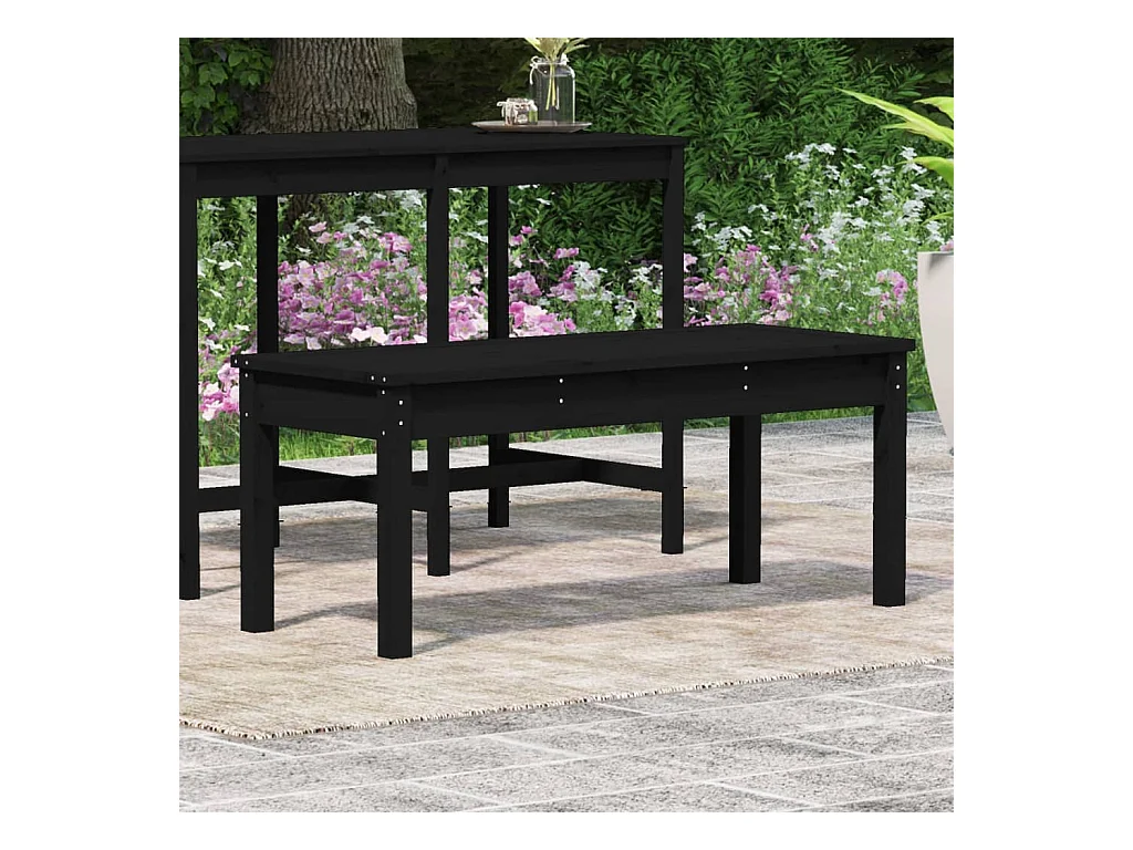Banco de jardín negro 109x44x45 cm madera maciza de pino