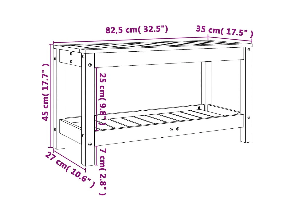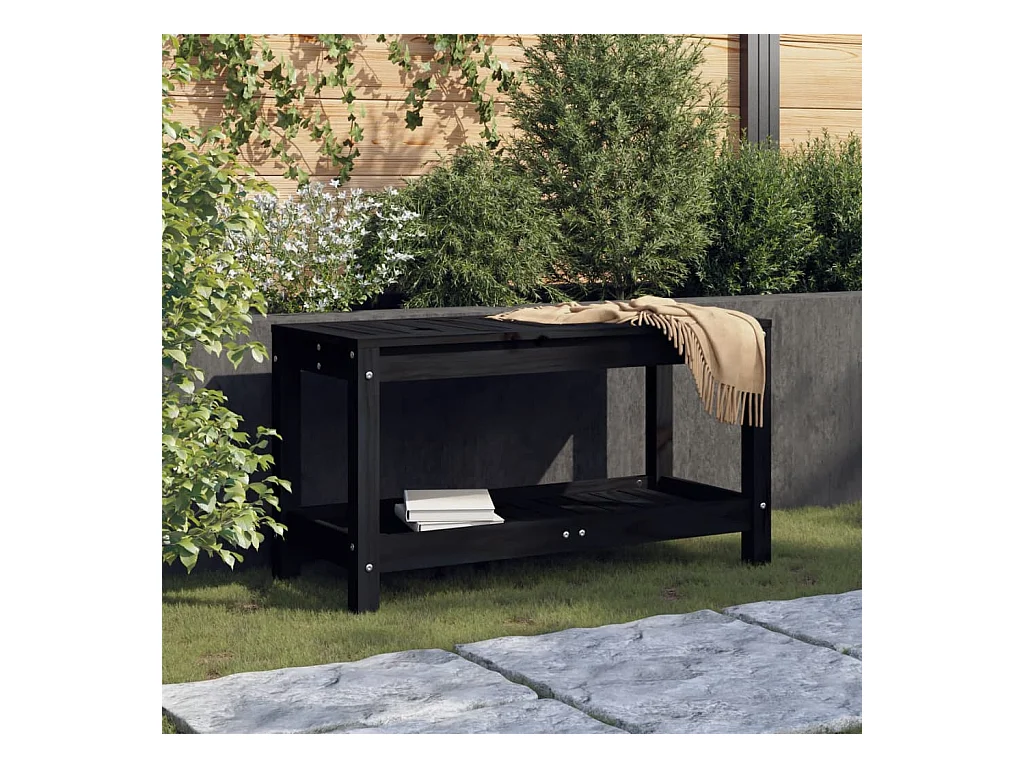 Banco de jardín negro 82,5x35x45 cm madera maciza de pino