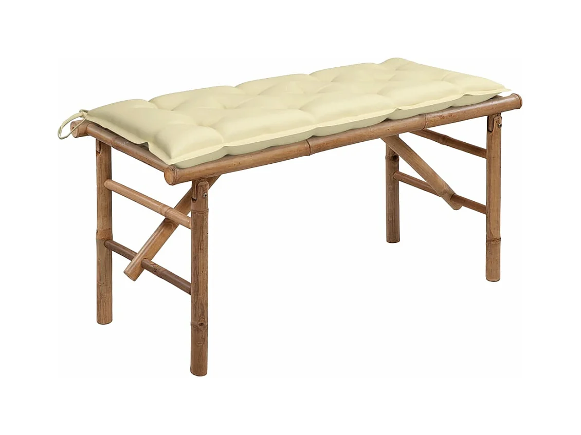 Banco de jardín 120 cm con cojines crema madera acacia maciza