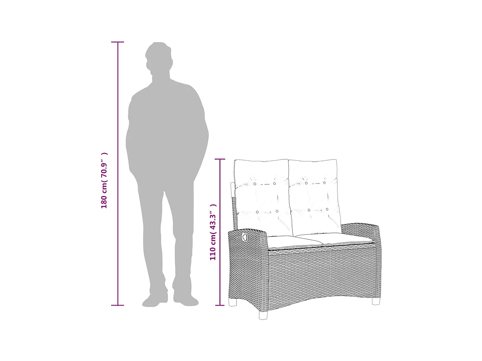 Banco de jardín reclinable con cojines de mimbre de resina gris