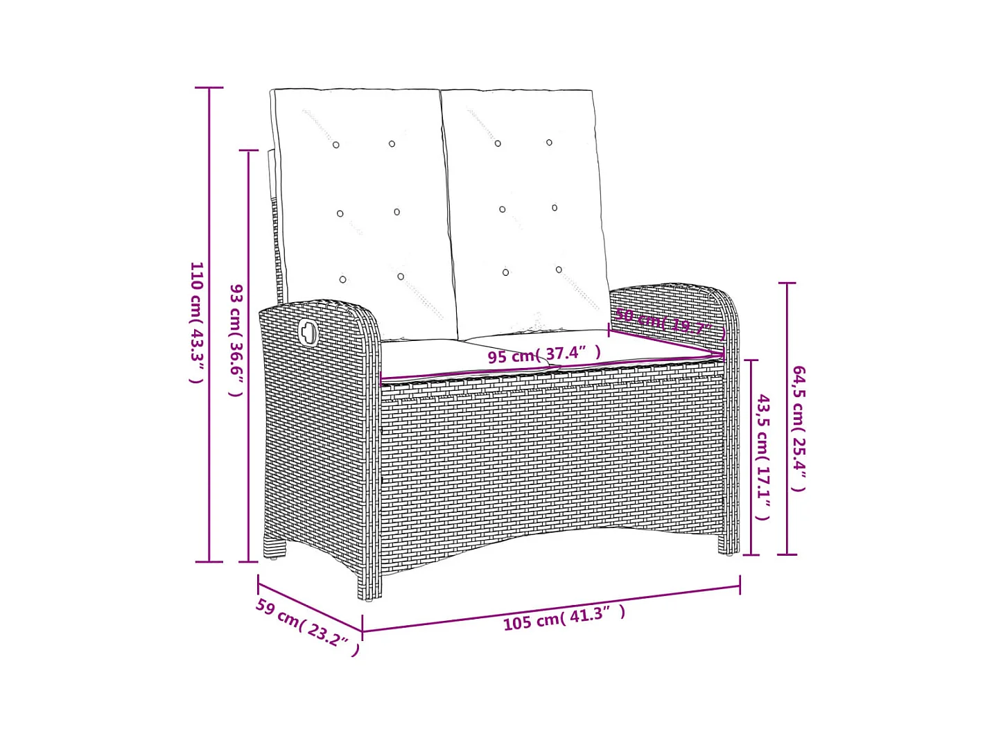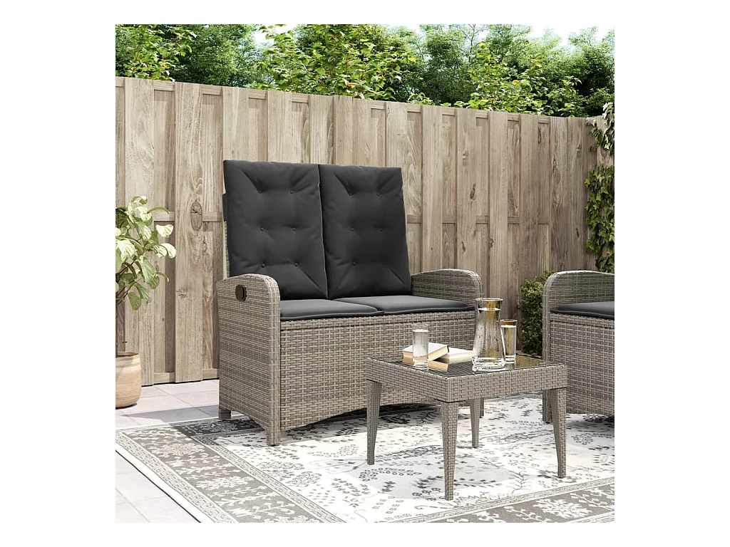 Banco de jardín reclinable con cojines de mimbre de resina gris