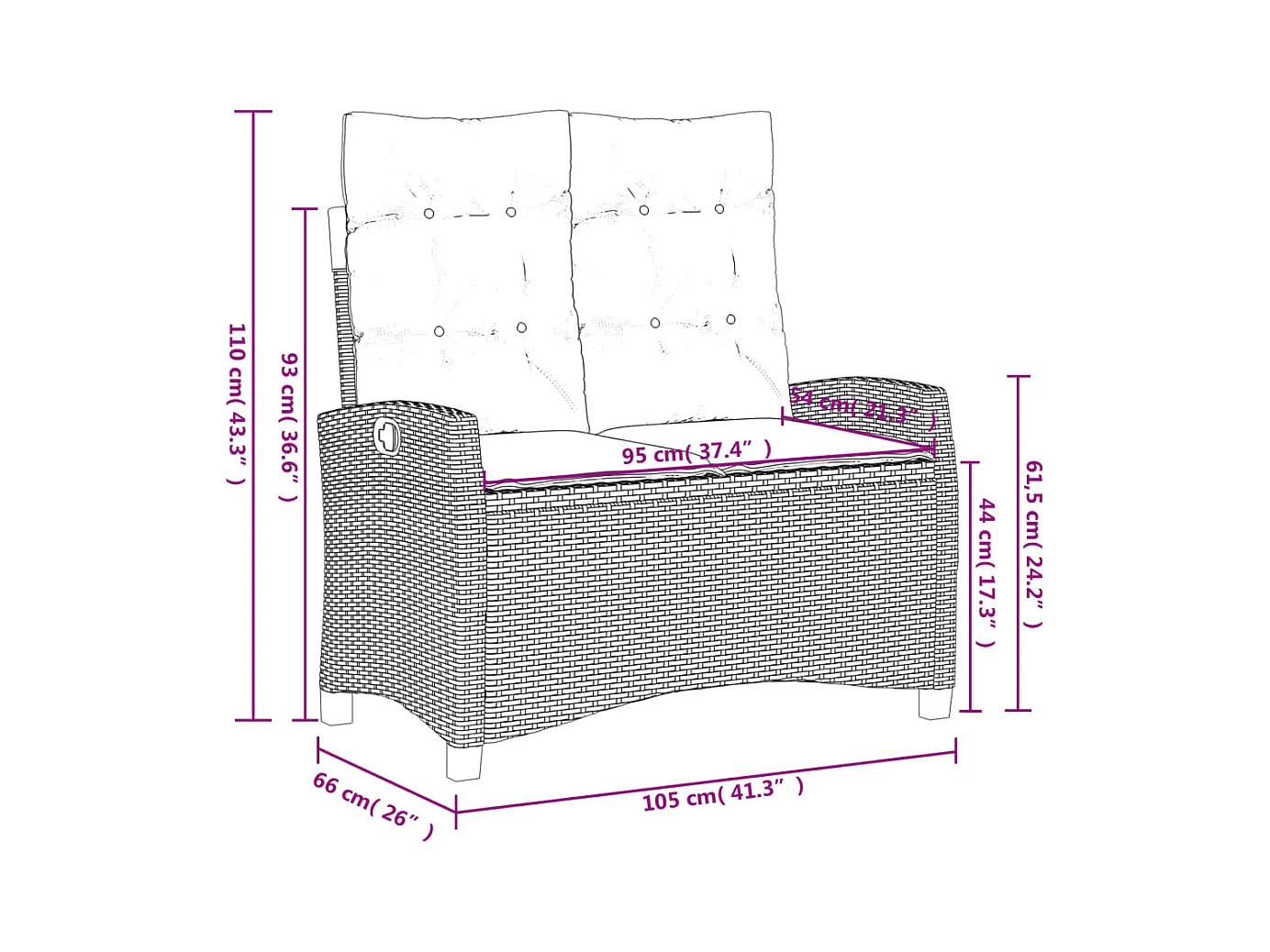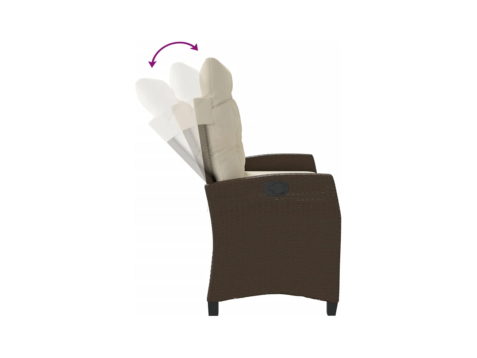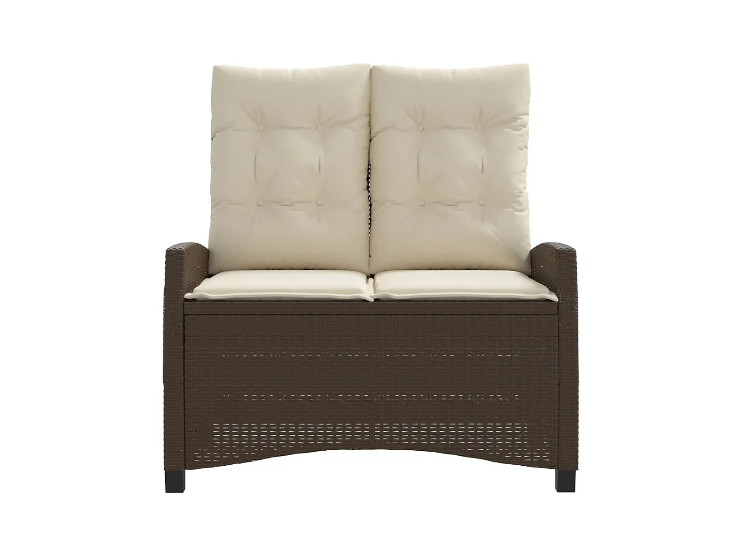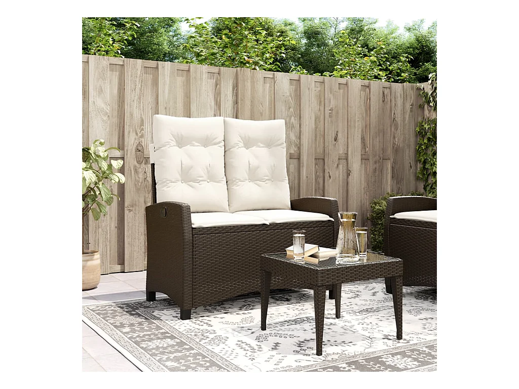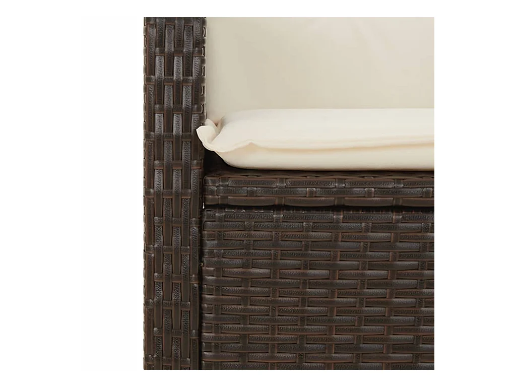 Banco de jardín reclinable con cojines de mimbre de resina marrón