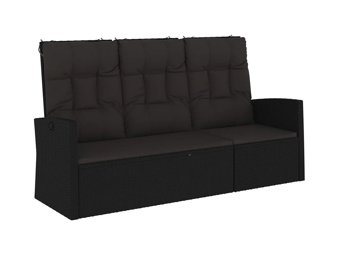 Banco de jardín reclinable y cojines negros 173cm mimbre resina