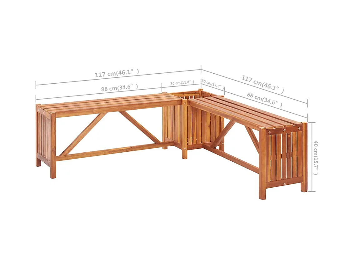 Banco de jardín y jardinera 117x117x40 cm Madera maciza de acacia