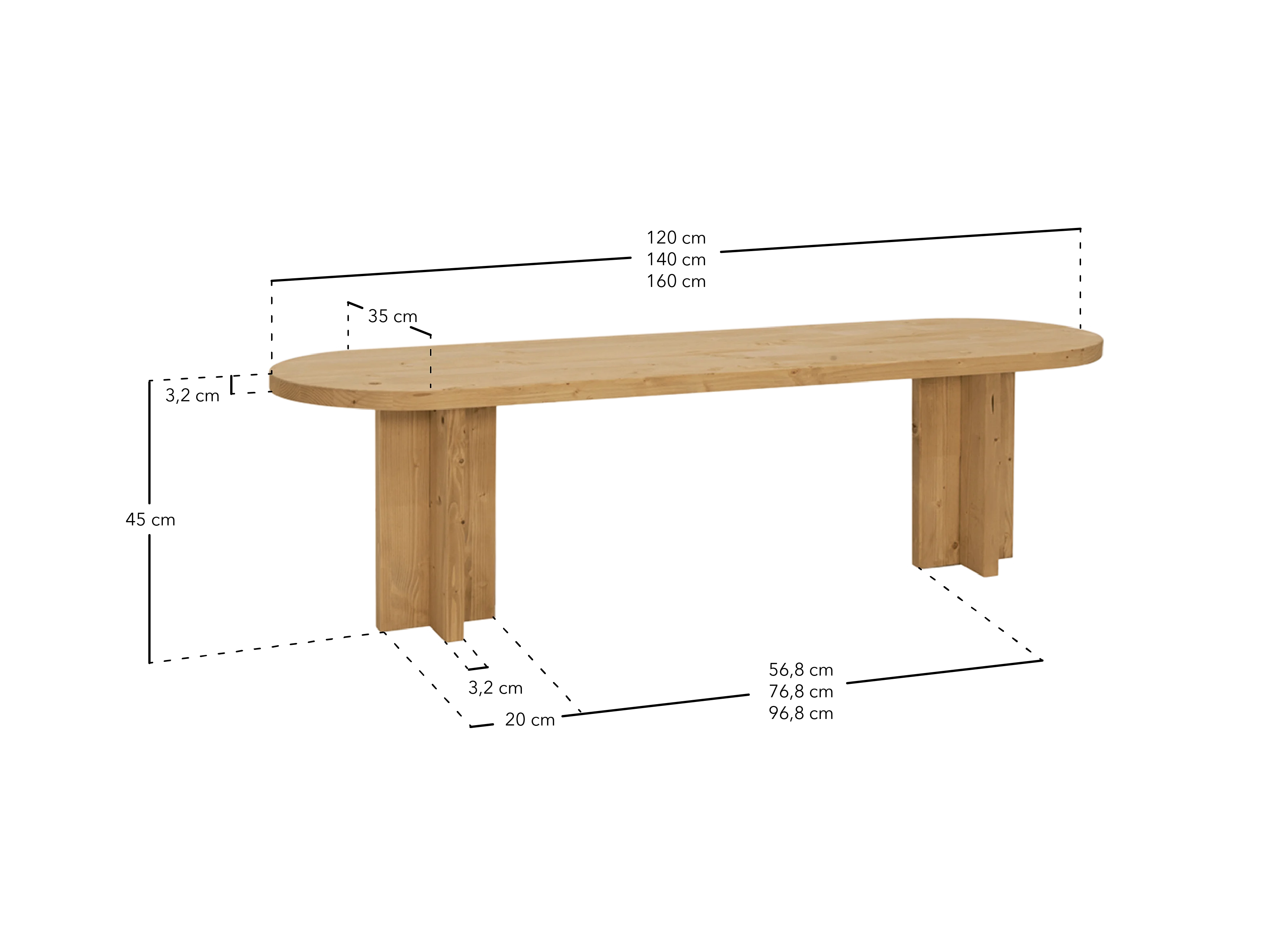 Banco de madera de abeto ovalado Decowood para interiores en color roble oscuro de 140x45cm - TOKYO - DECOWOOD