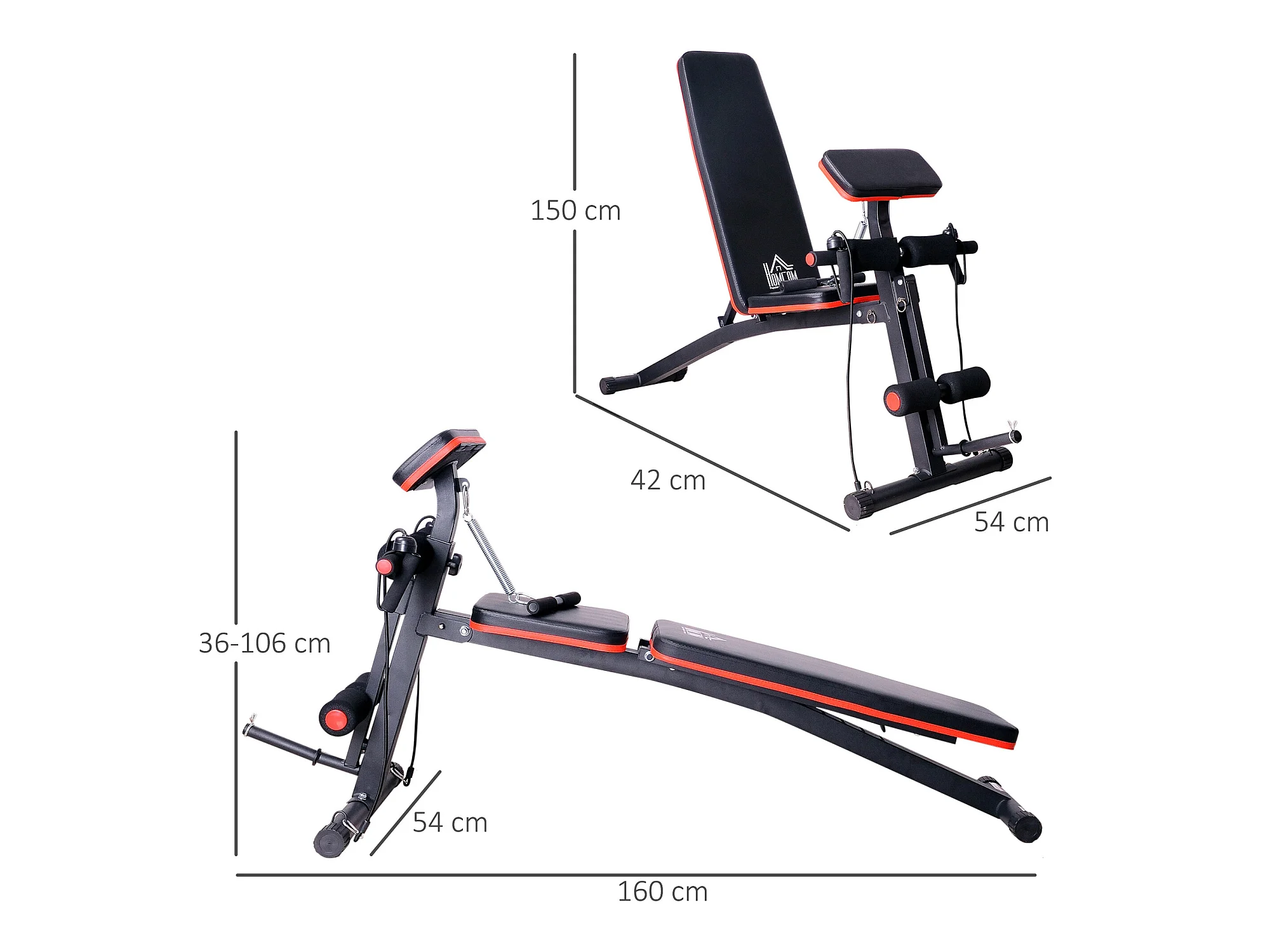 Banco de abdominales negro, rojo 55.5x137.5x68 cm HOMCOM