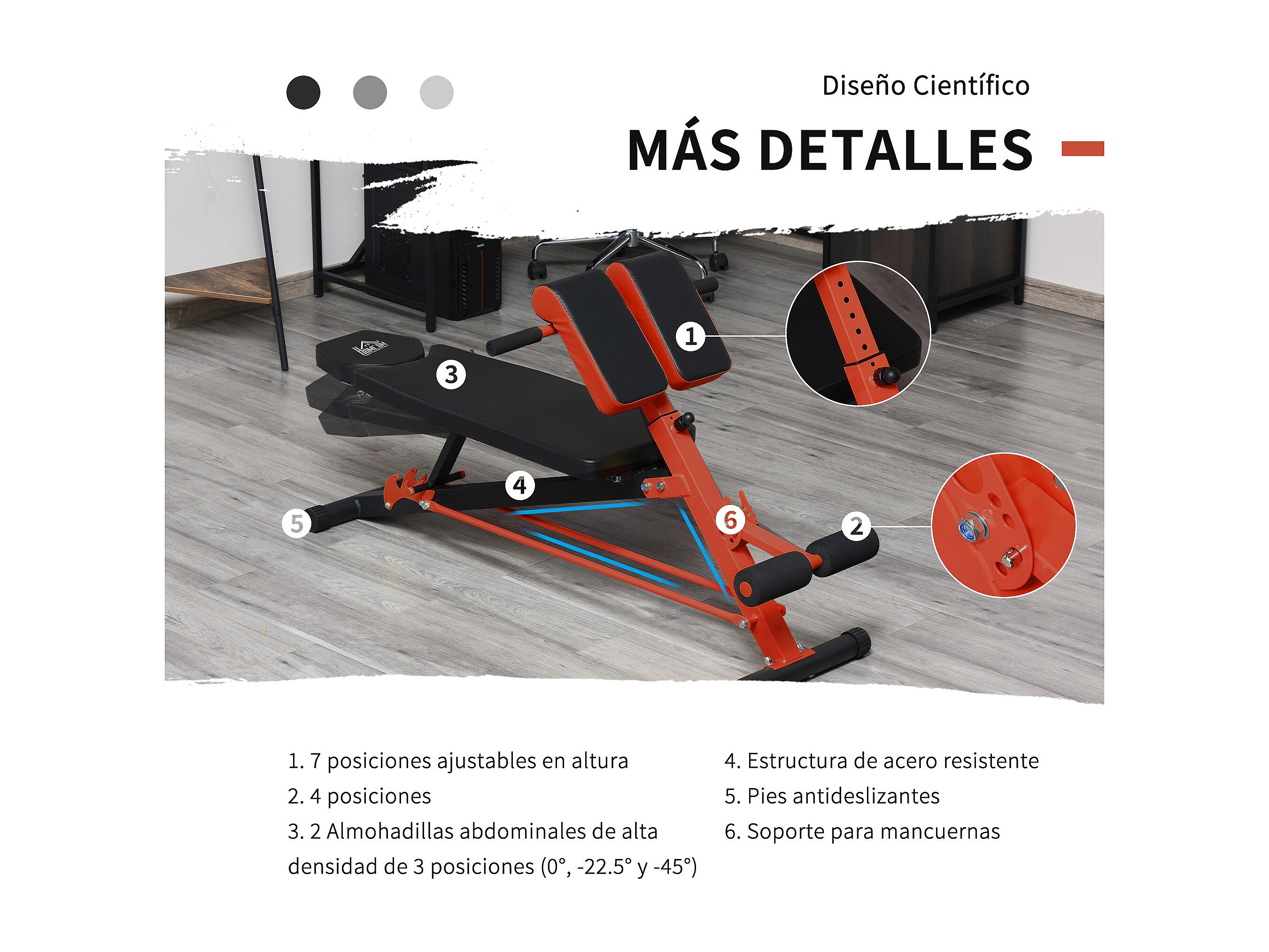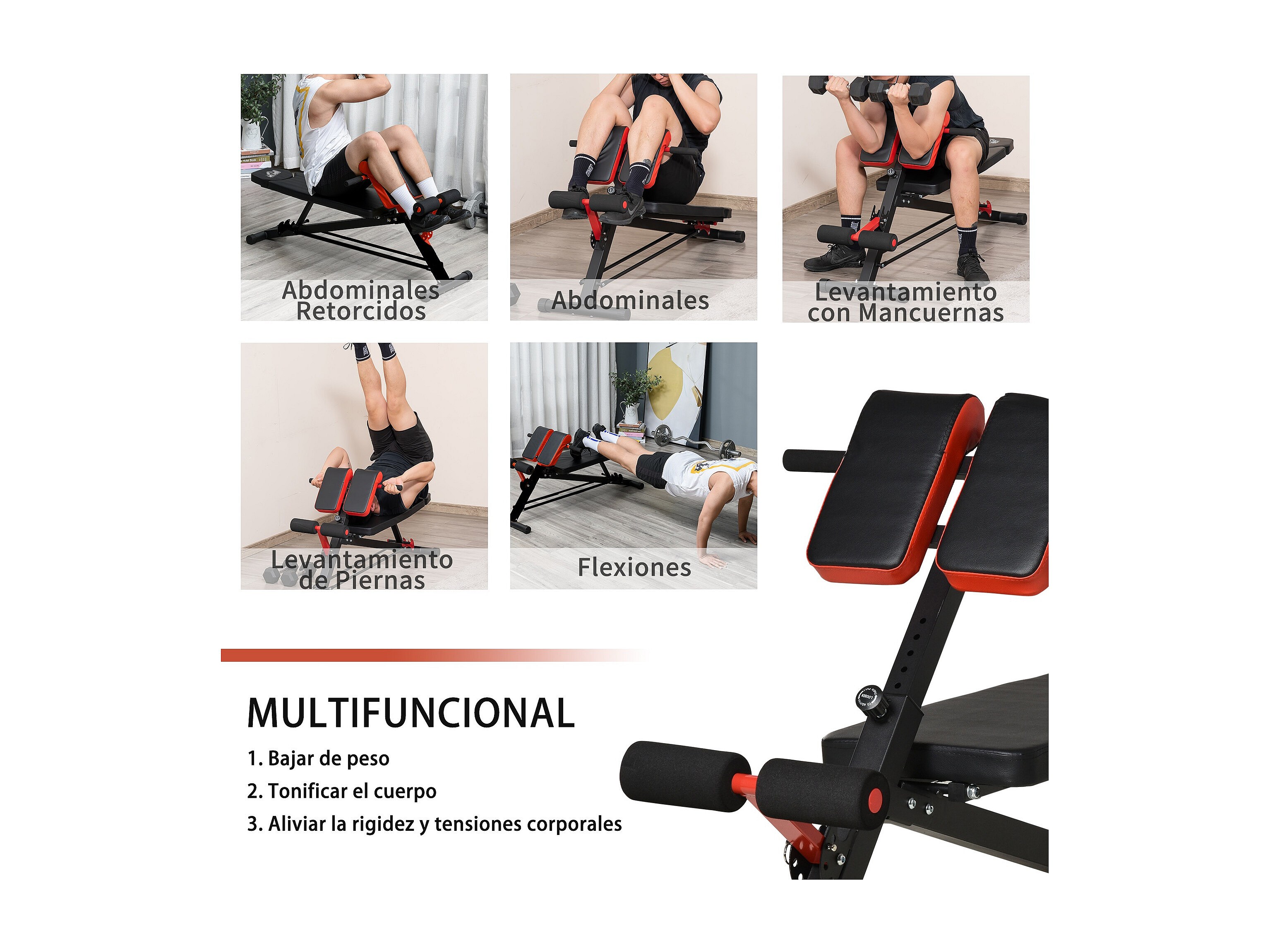 • Multifuncional: se pueden realizar flexiones laterales, abdominales, abdominales inversas y más• Fabricado con acero de alta calidad y acabado con recubrimiento en polvo resistente a los arañazos