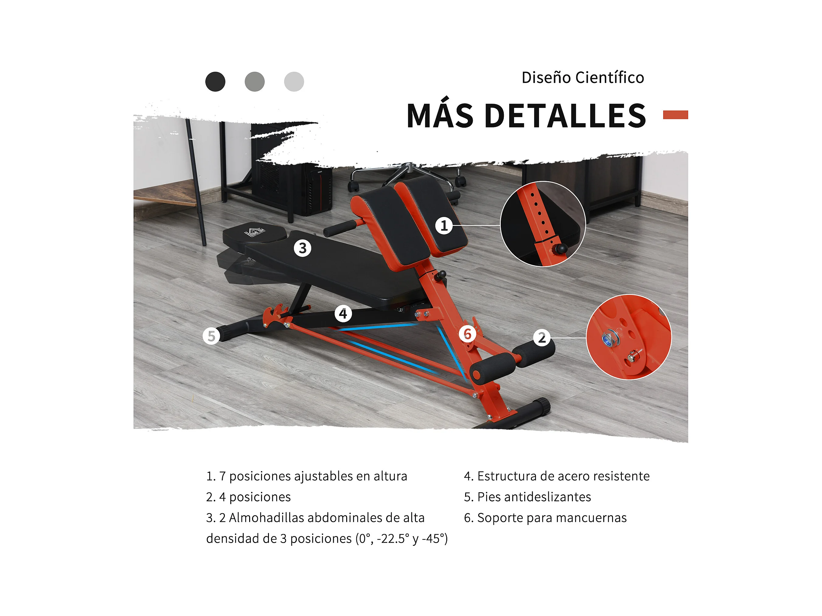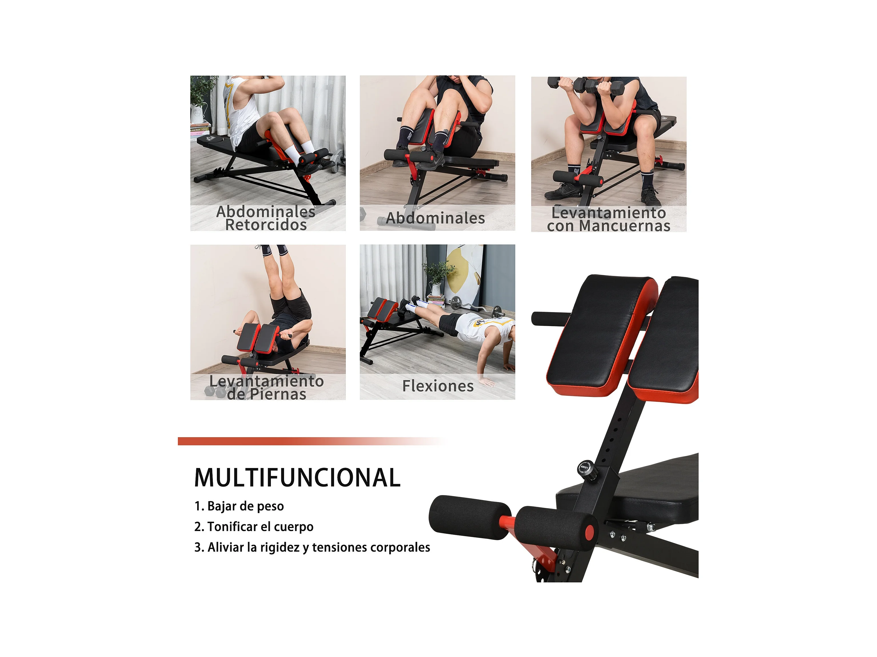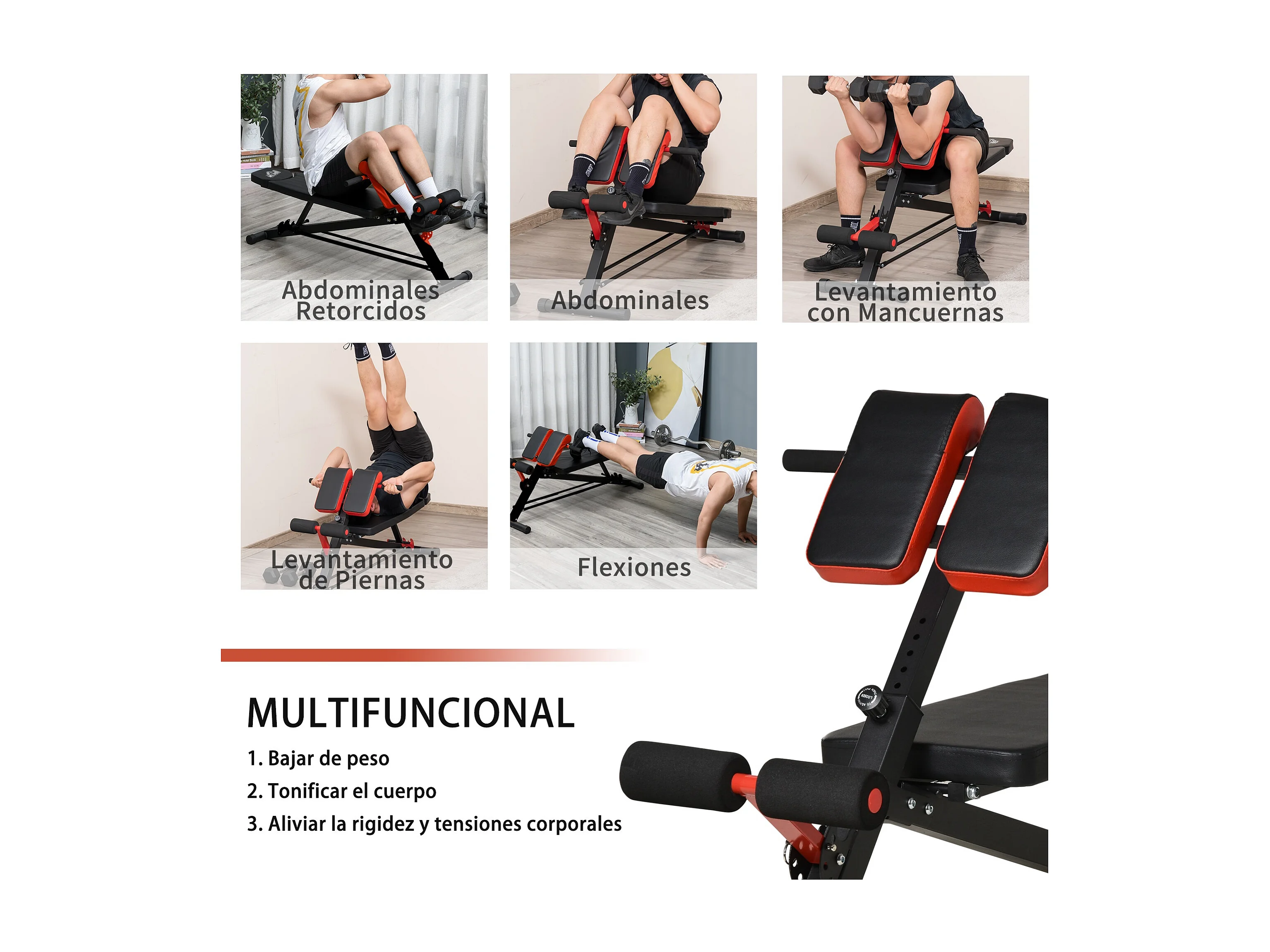 Banco de abdominales negro, rojo 55.5x137.5x68 cm HOMCOM