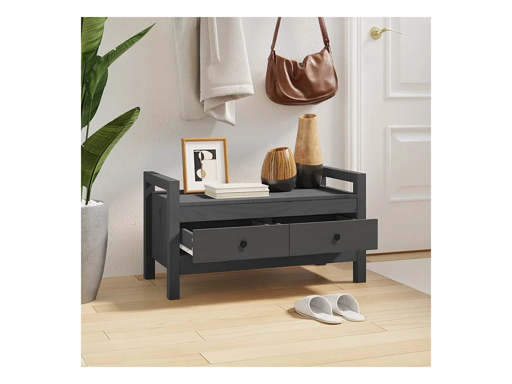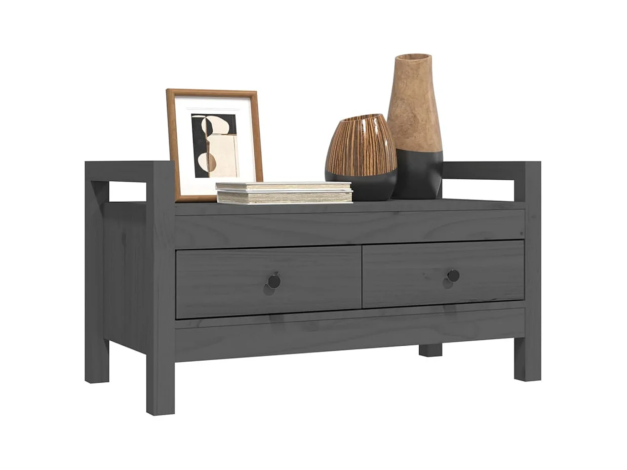 Banco de recibidor madera maciza de pino gris 80x40x43 cm ES134226
