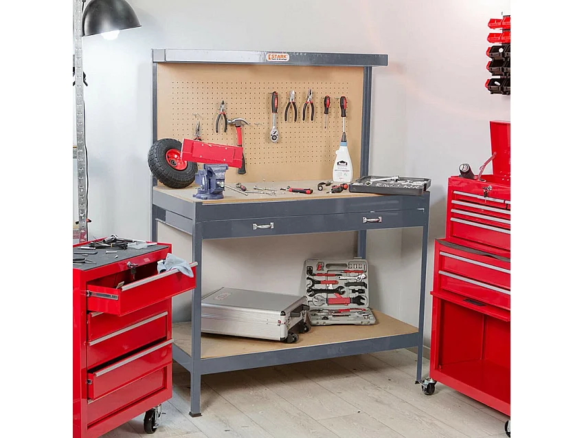 Banco de trabajo con tablero de clavijas y cajón para garaje taller Max 120x60x150 cm