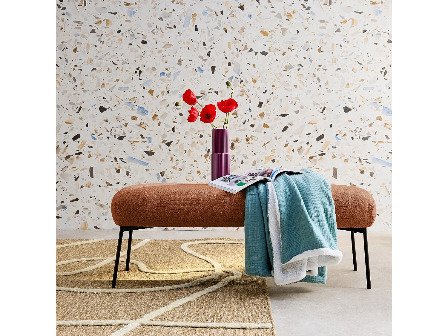 Banco, extremo de la cama con revestimiento de borreguito óxido