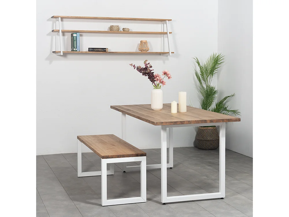 Banco iCub Strong ECO 100x40x45cm Blanco en madera maciza de pino acabado vintage estilo industrial Box Furniture