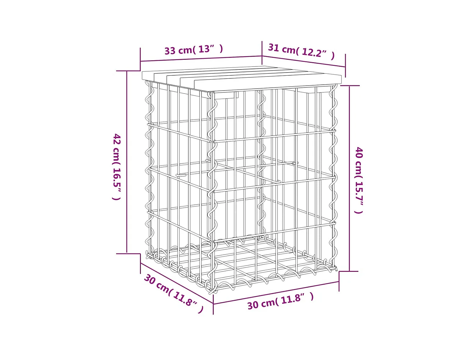 Banco jardín diseño gaviones madera abeto Douglas 33x31x42 cm