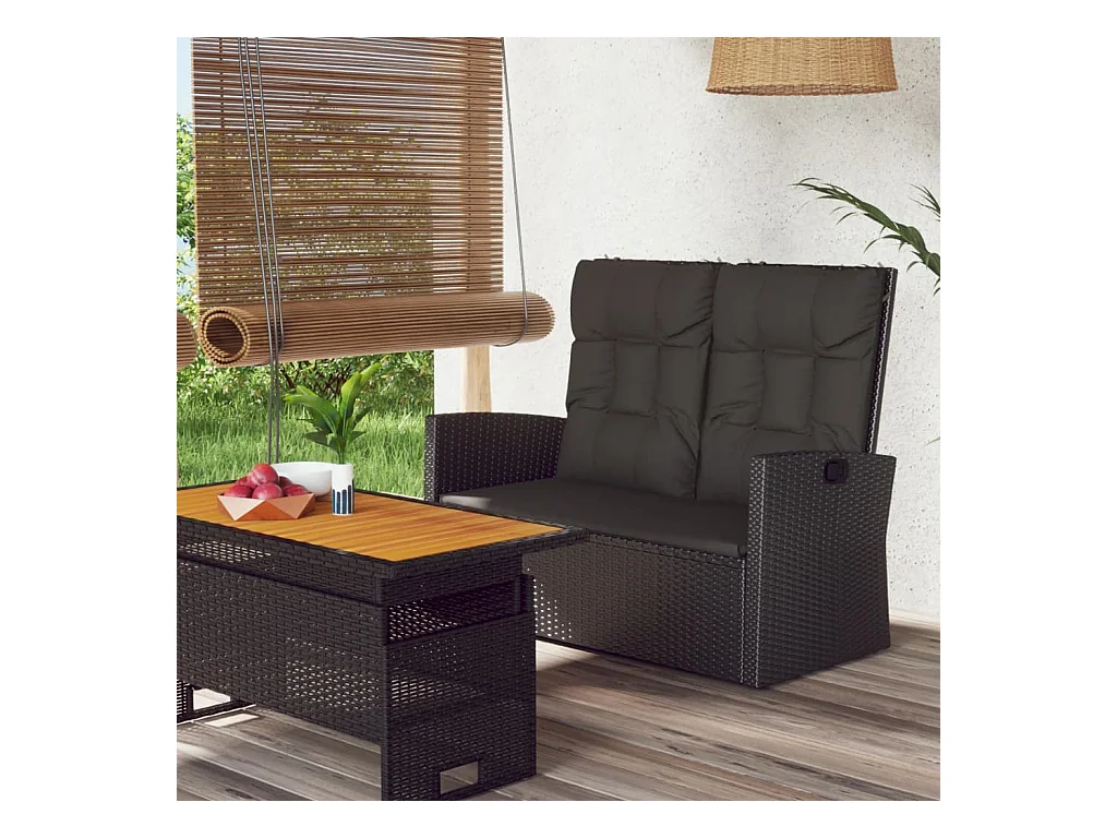 Banco de jardín reclinable con cojines ratán PE negro 107 cm