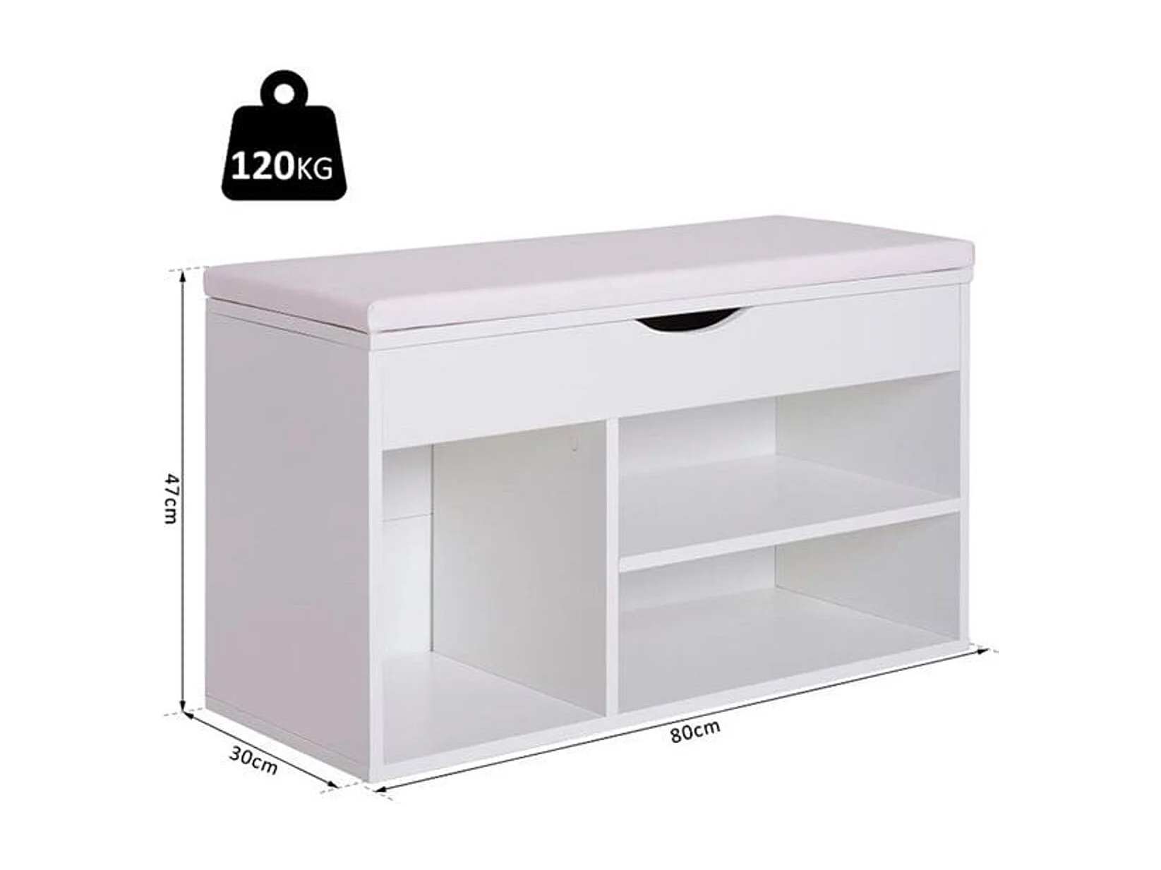 Banco zapatero 3 estantes madera blanco 47x80x30 cm