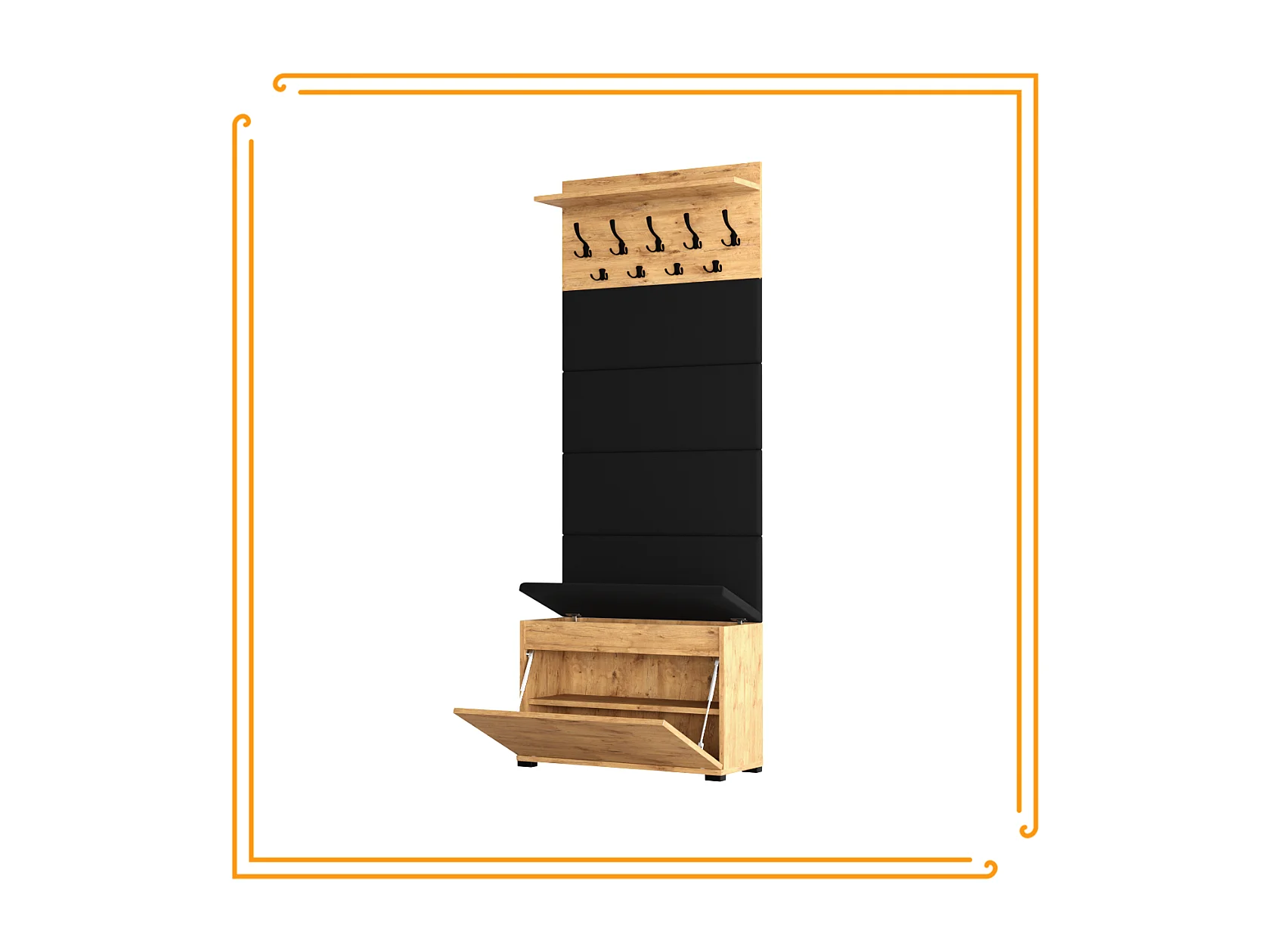 Banco Zapatero con Asiento Tapizado y Perchero para Recibidor