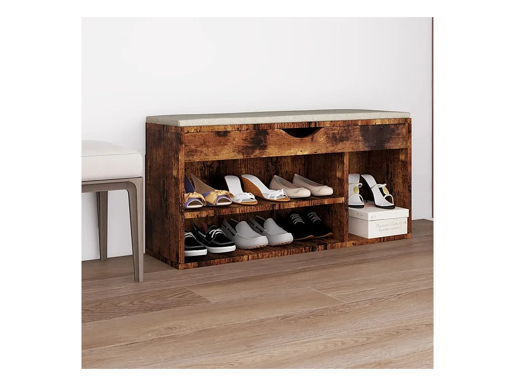 Banco zapatero con cojín Roble ahumado Madera de ingeniería