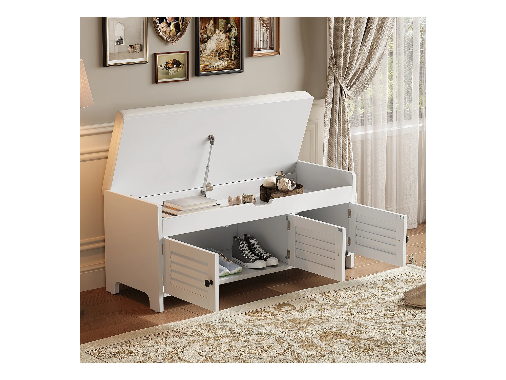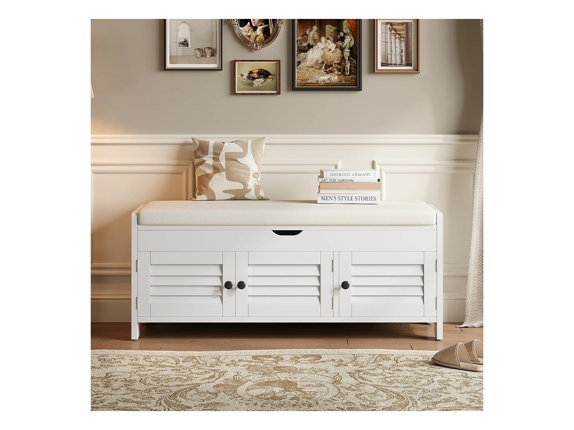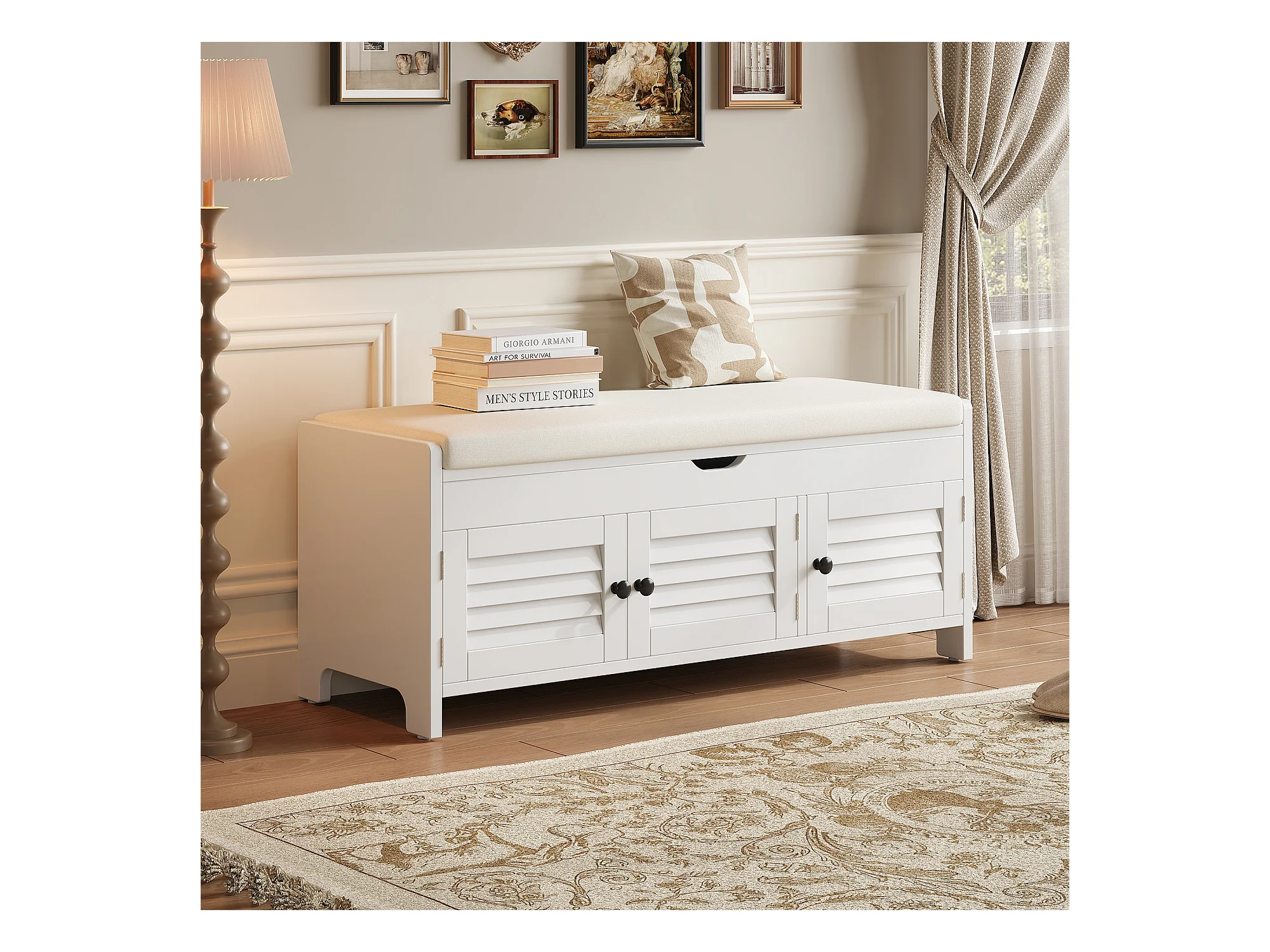Banco zapatero moderno con asiento y 3 puertas - 110 x 40 x 50 cm - Madera MDF - Blanco