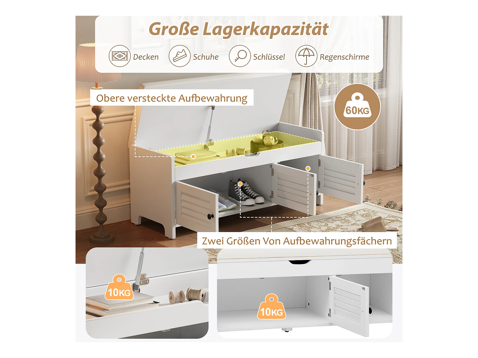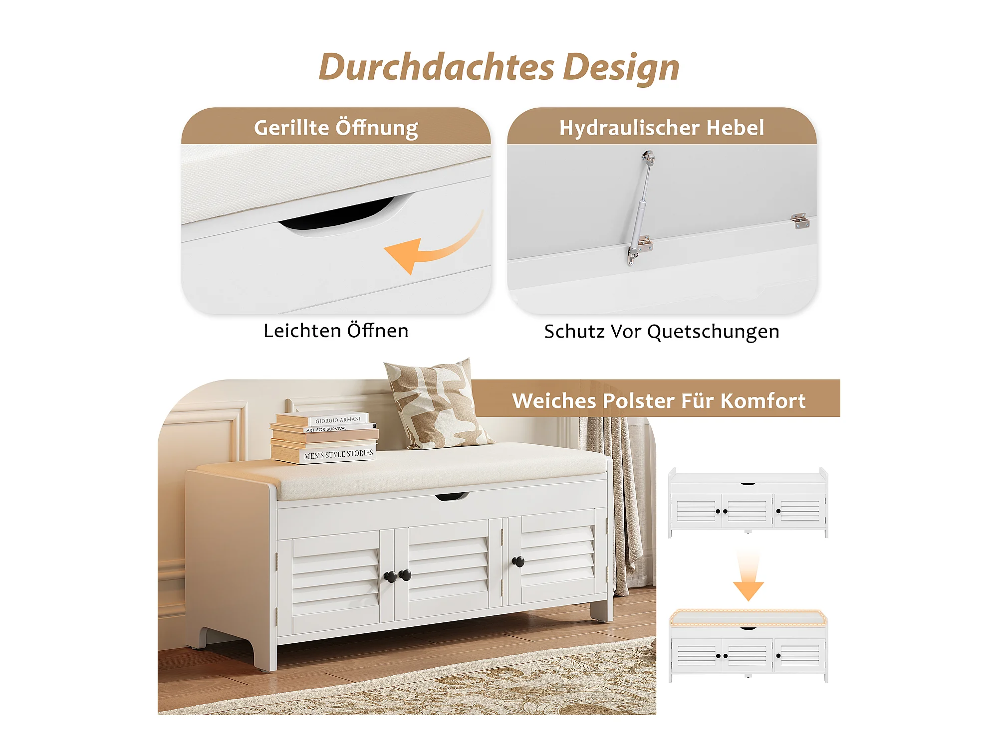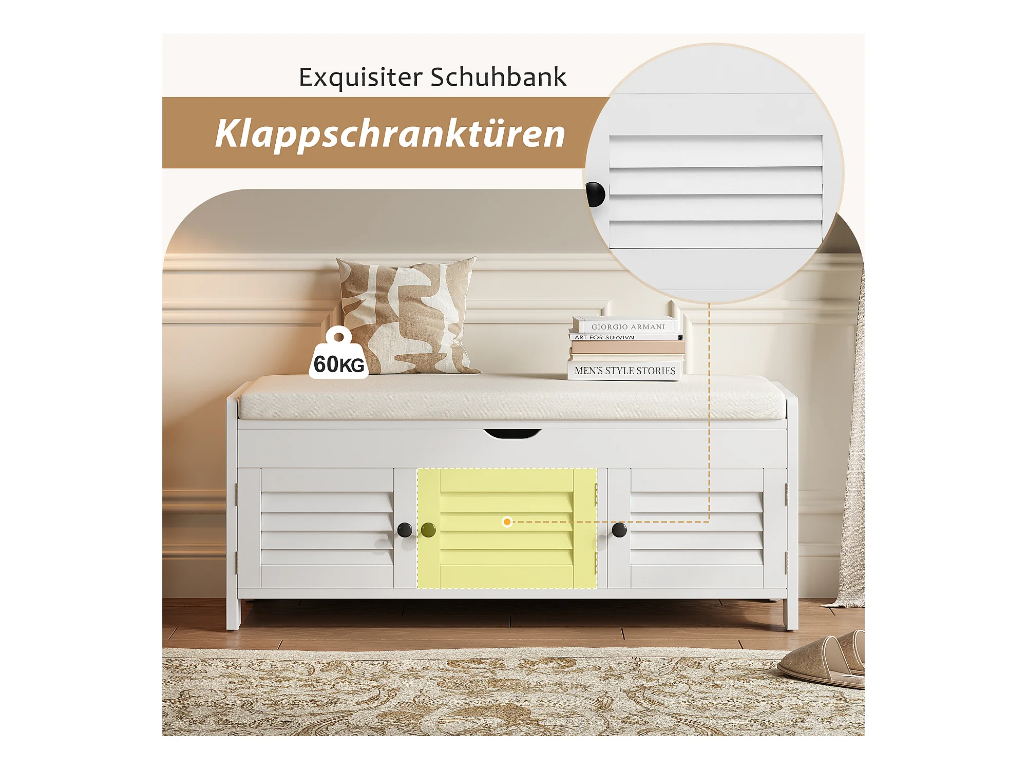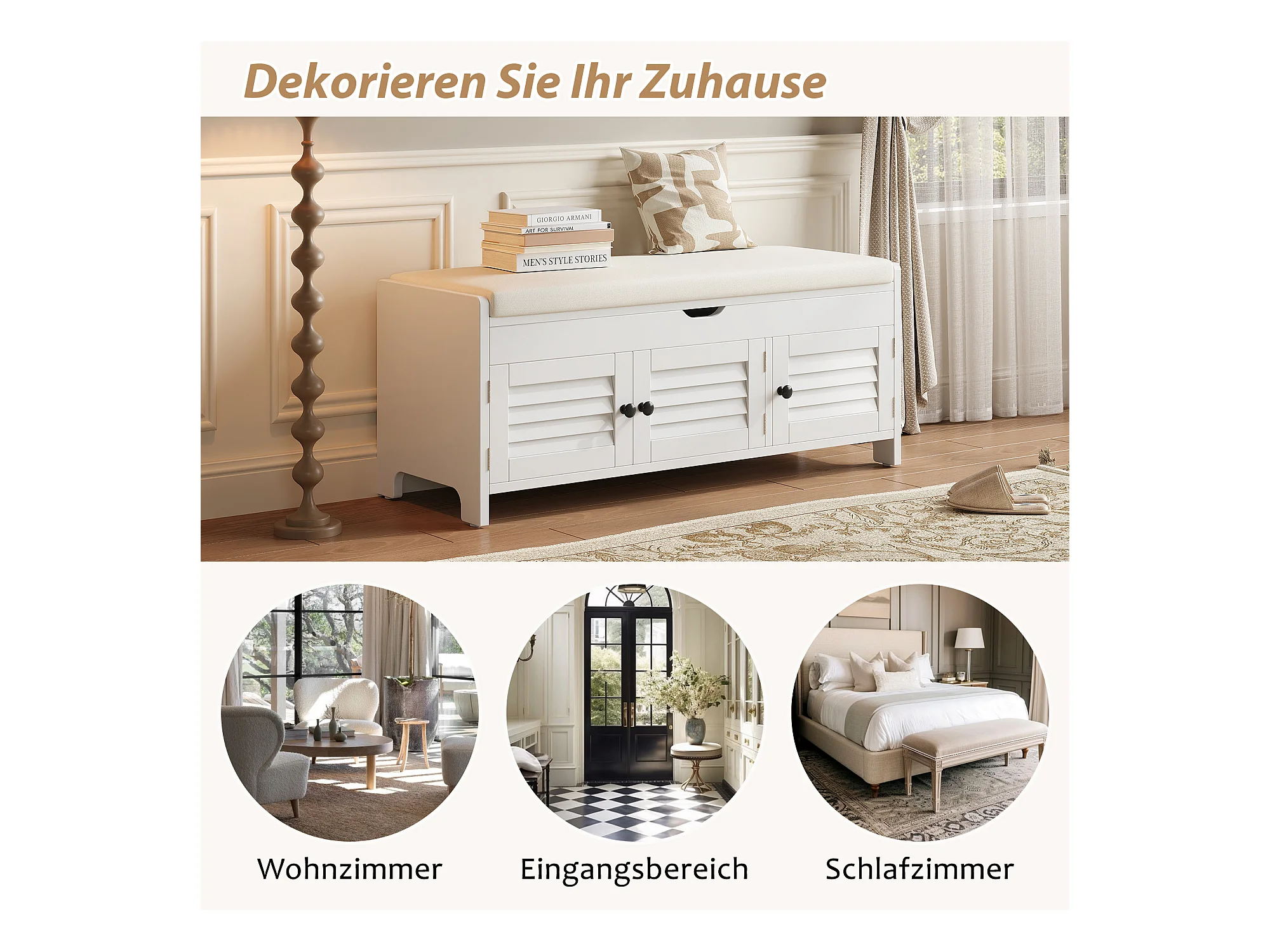 Banco zapatero moderno con asiento y 3 puertas - 110 x 40 x 50 cm - Madera MDF - Blanco