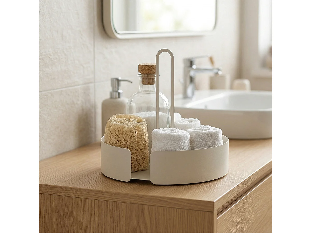 Bandeja redonda portautensilios de metal blanco Joko