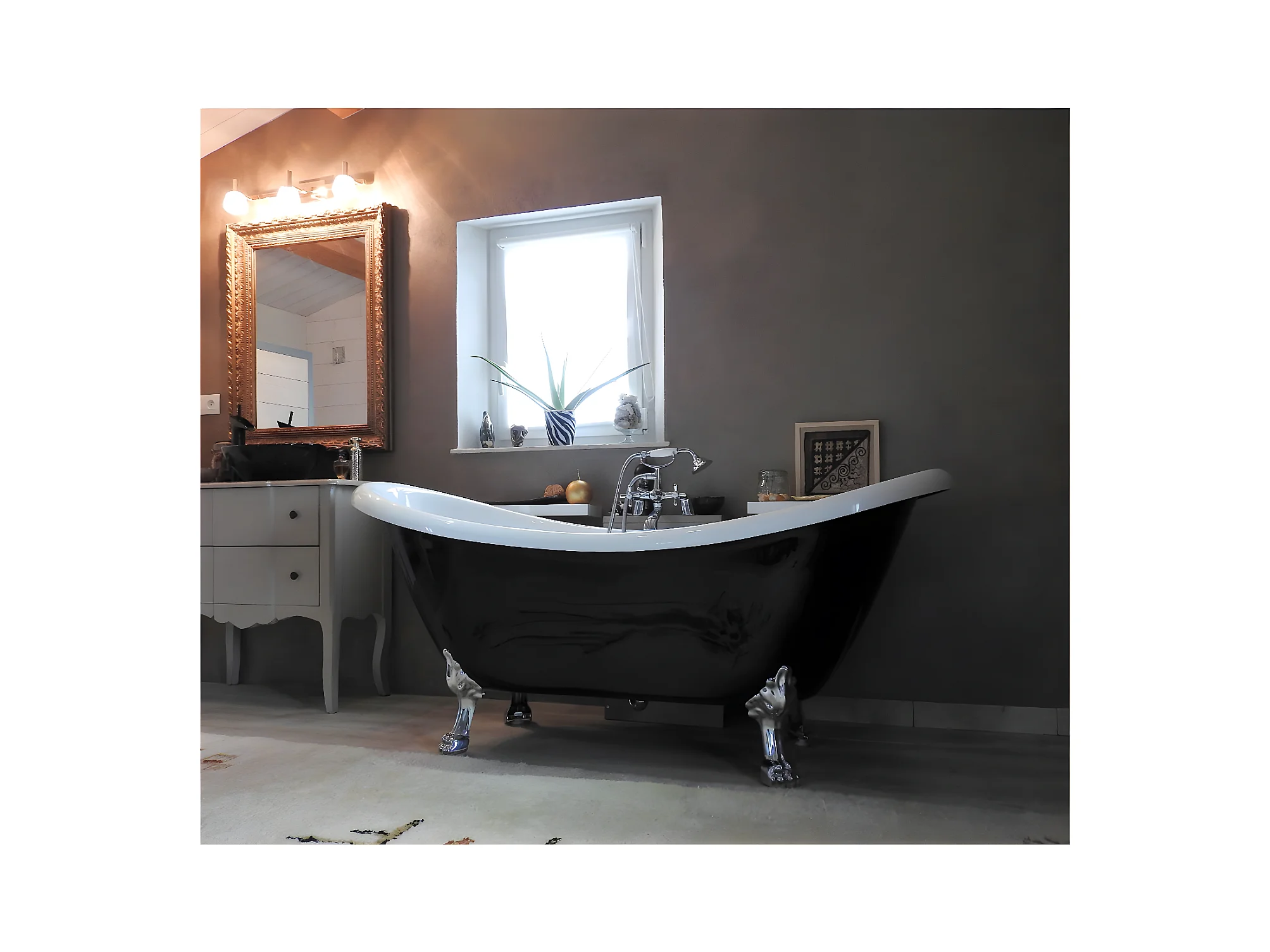 Bañera con patas DARLINGTON NEGRA 175 cm patas LEÓN BLANCAS