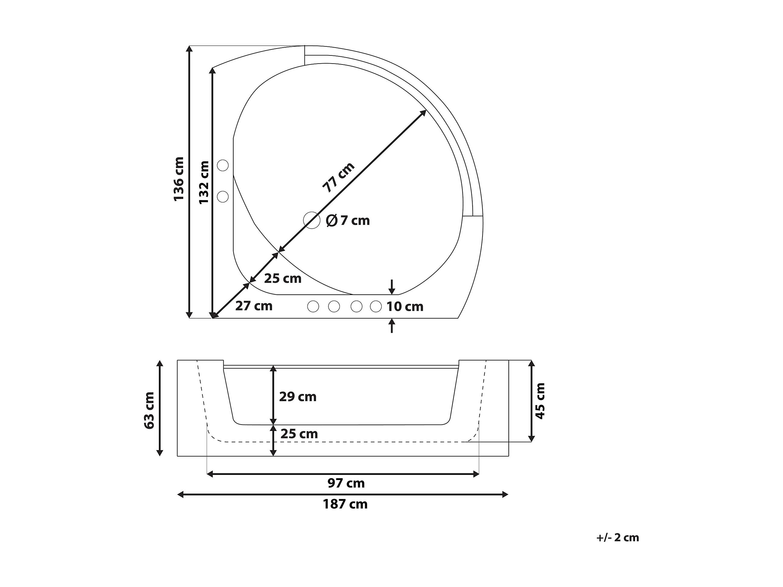 Bañera de hidromasaje LED esquinera MANGLE 187 x 136 cm Blanco