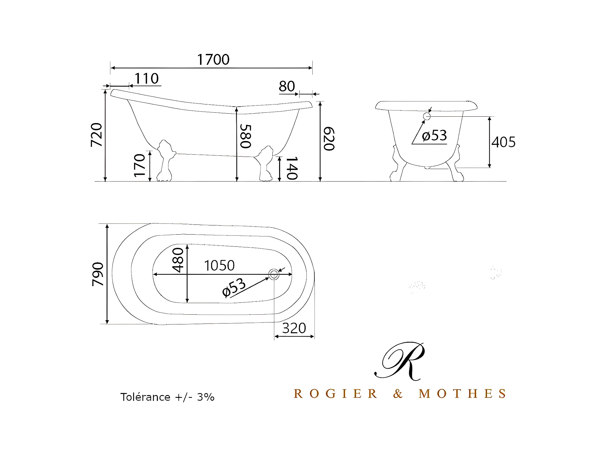 Bañera con patas CHELSEA 170 cm patas LEÓN DORADAS