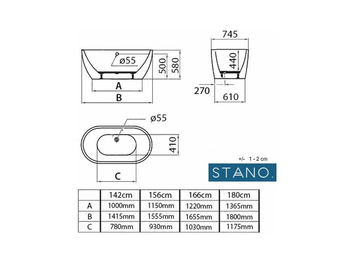 Bañera exenta TRENTO MURO | SANYCCES 175 cm - Sin griferia