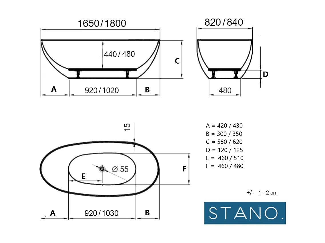 Bañera exenta FLORIDA 180 cm Mate