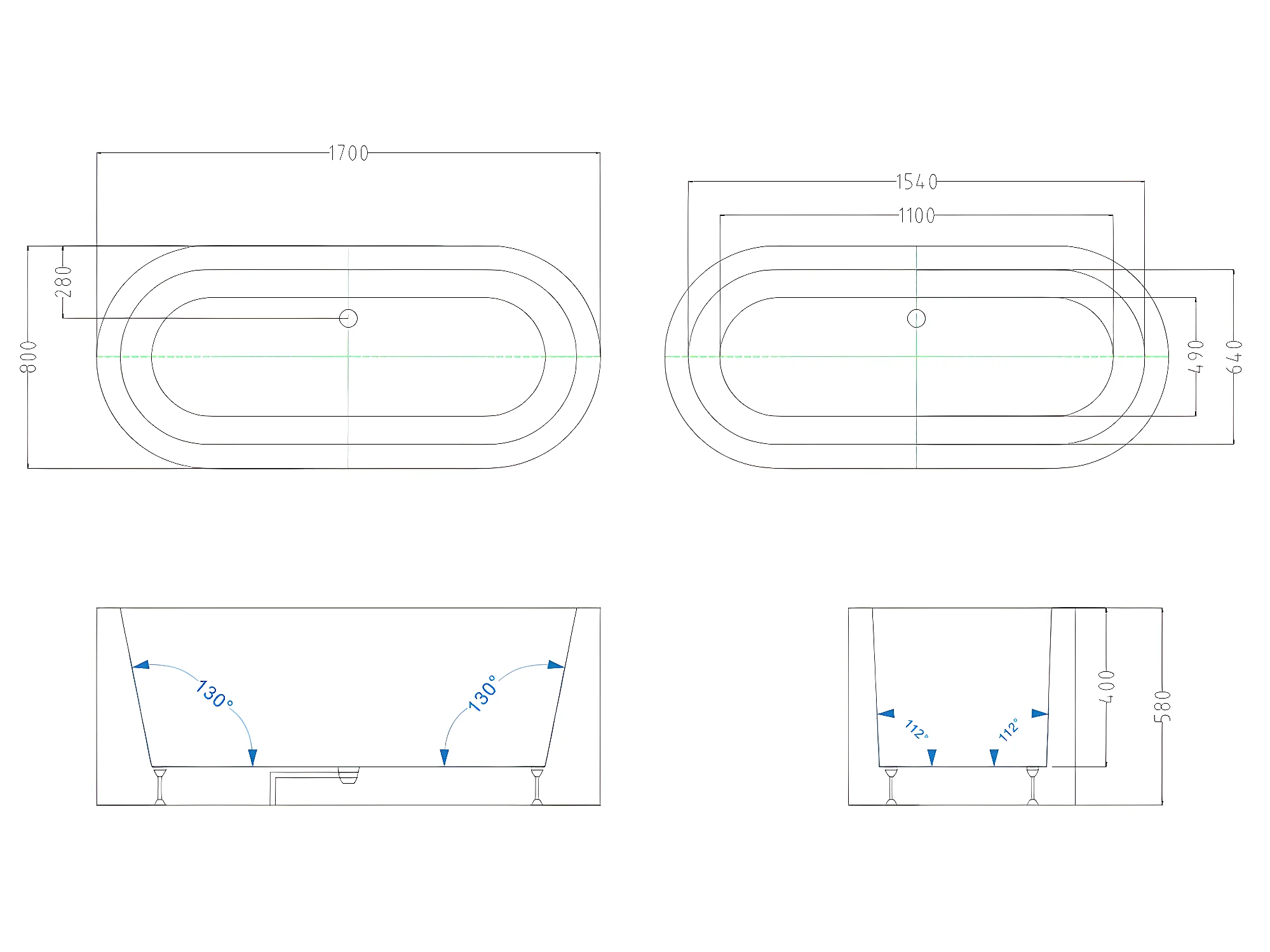 Bañera exenta ovalada - 200 L - 170 x 80 x 58 cm - Blanco - Acrílico - NEPTUNA