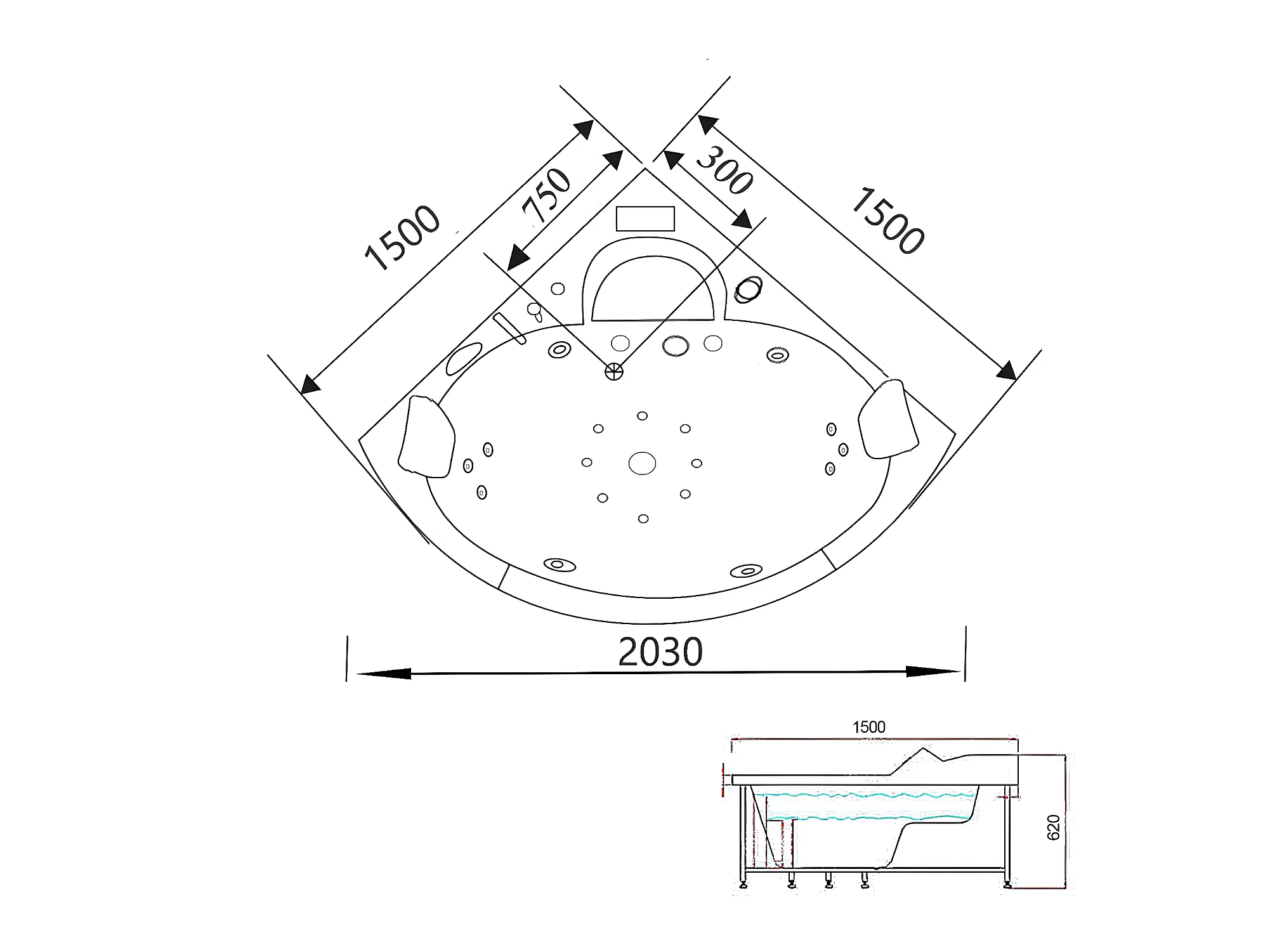 Bañera hidromasaje 150 X 150 cm doble bomba 20 jets - Wisteria