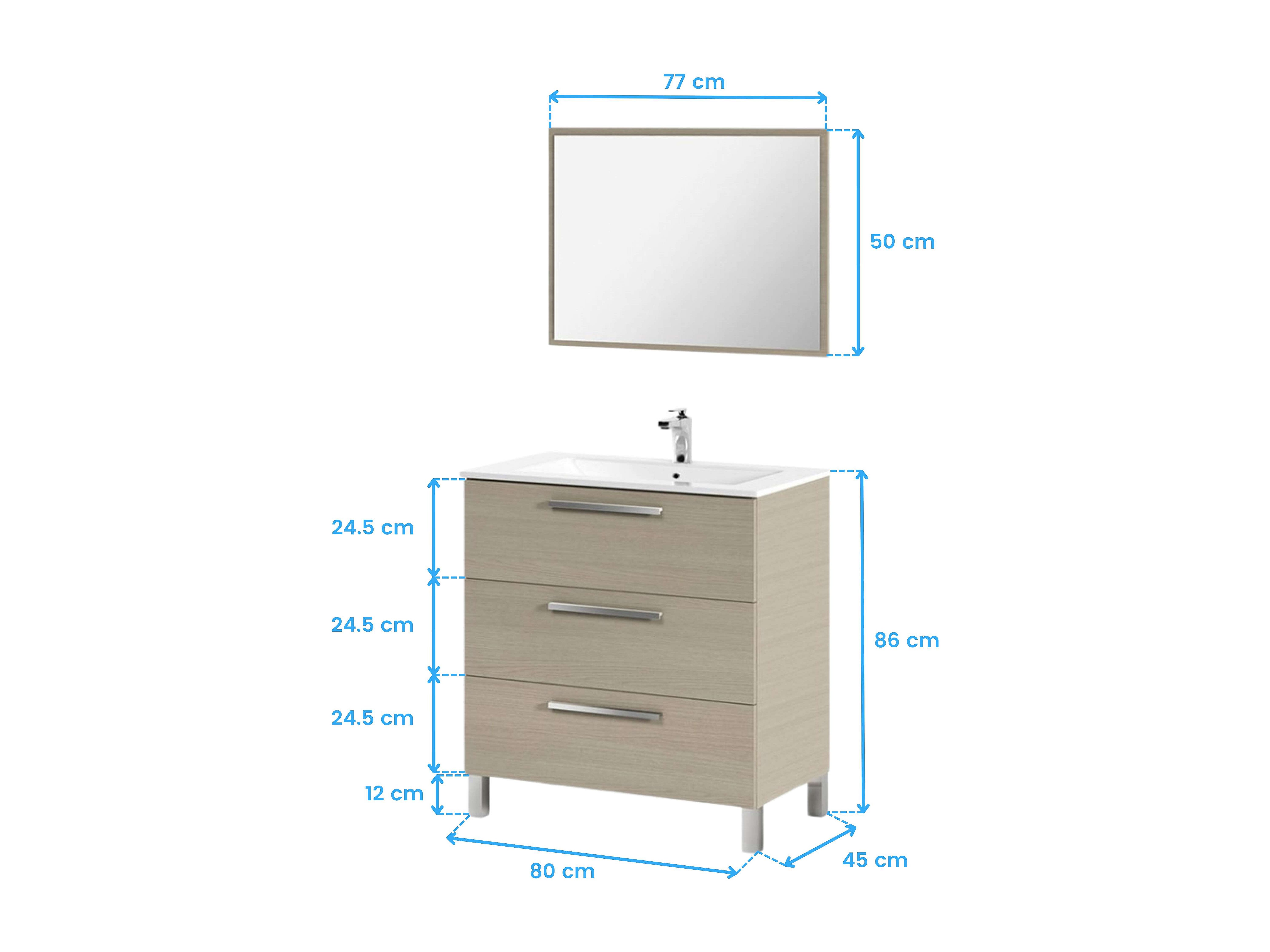 Mueble Baño Nubis Roble Alaska 3 Cajones y Espejo 80x86x45 cm