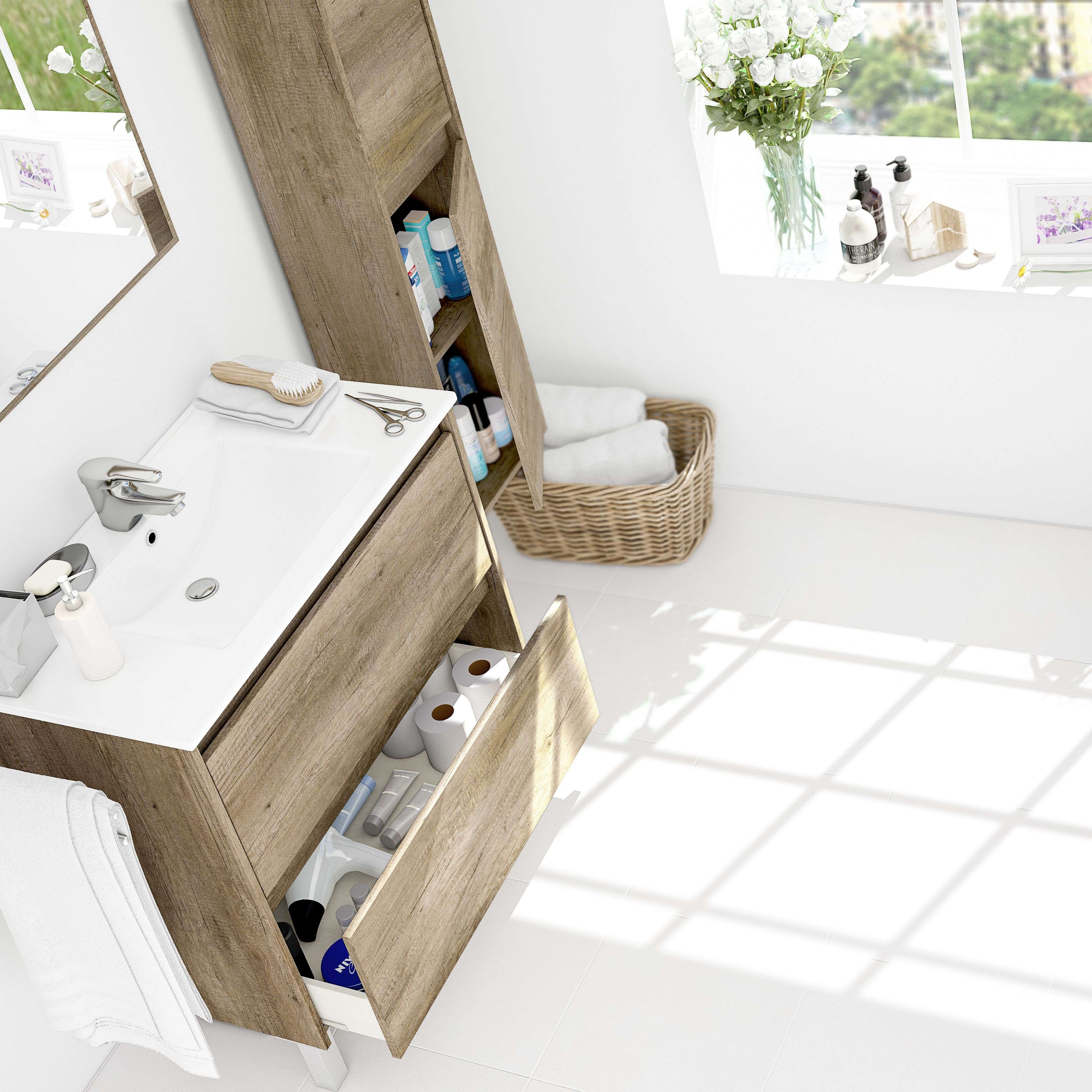 Baño: Mueble lavabo + columna + espejo + lavabo PMMA roble diseño moderno