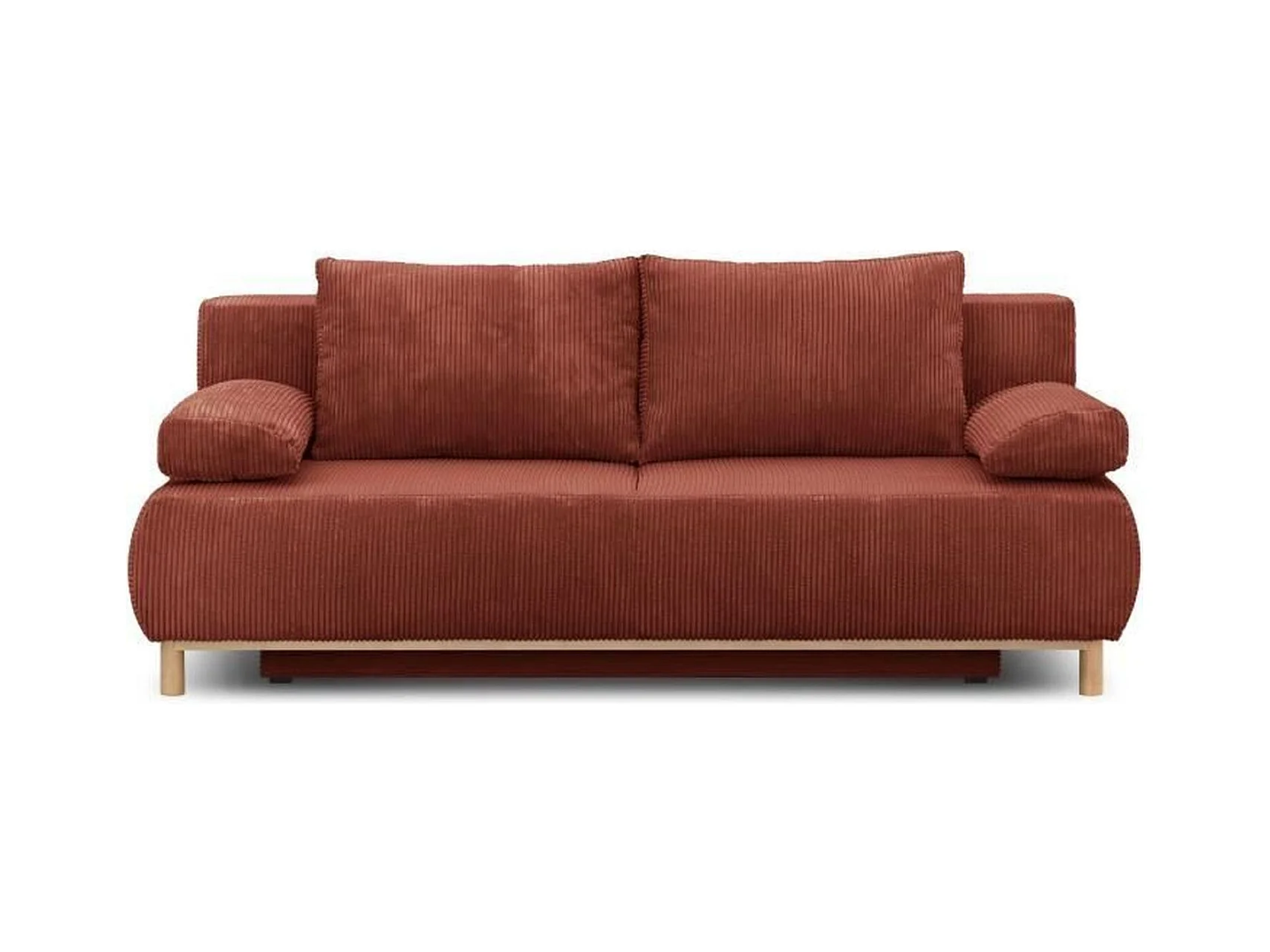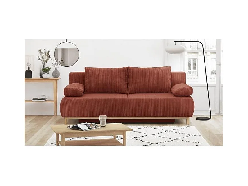 Sofá cama de 3 plazas de pana color terracota FINORO