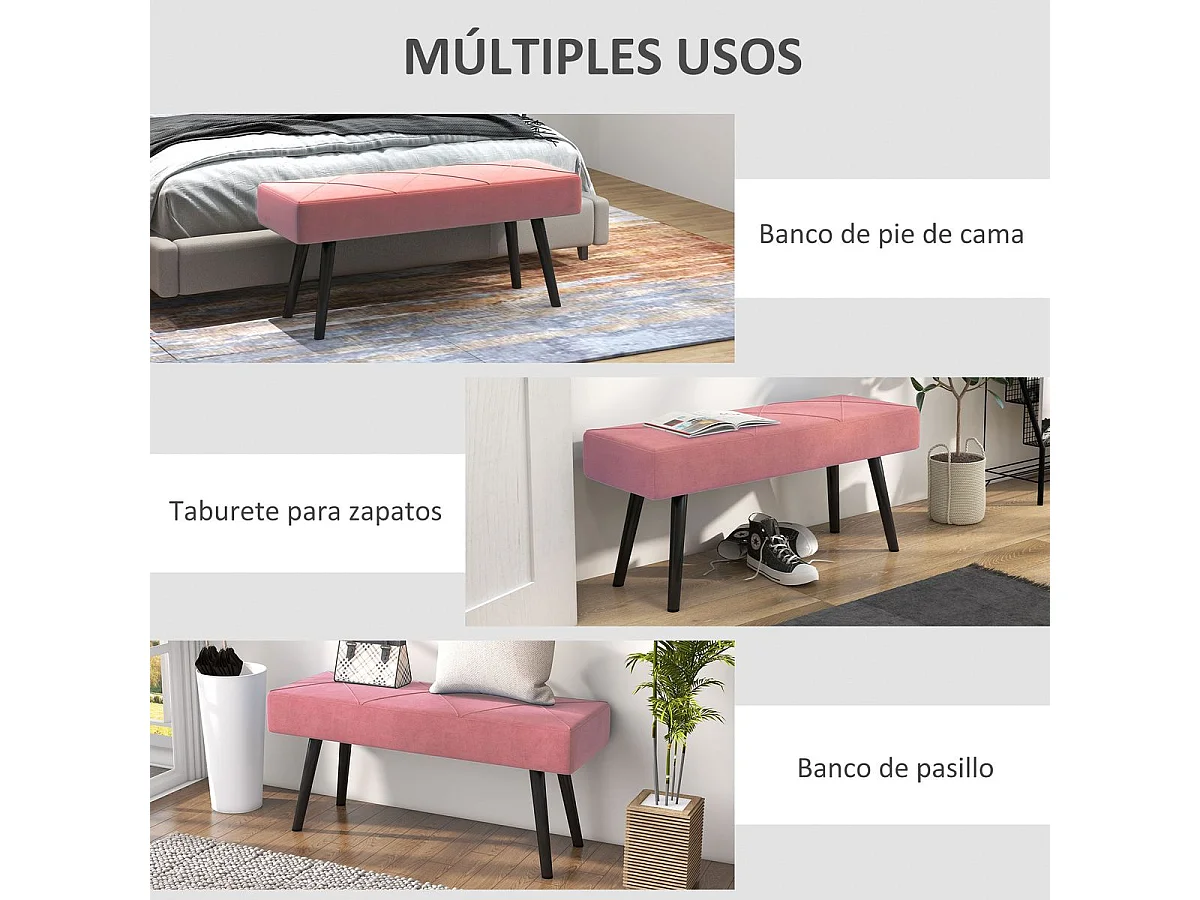 Banqueta Zure Homcom acolchada rosa 45x100x36 cm