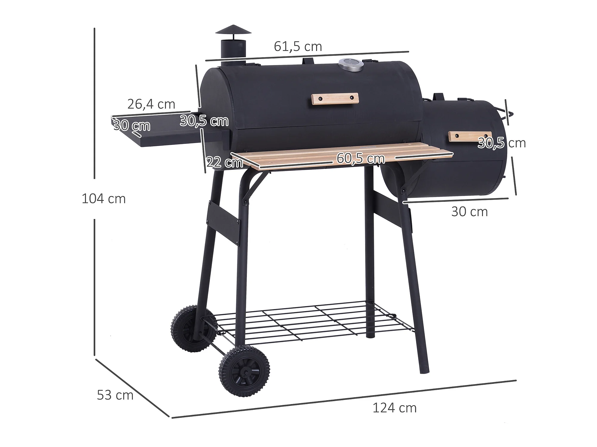 Barbacoa de carbón negro 124x53x104 cm Outsunny