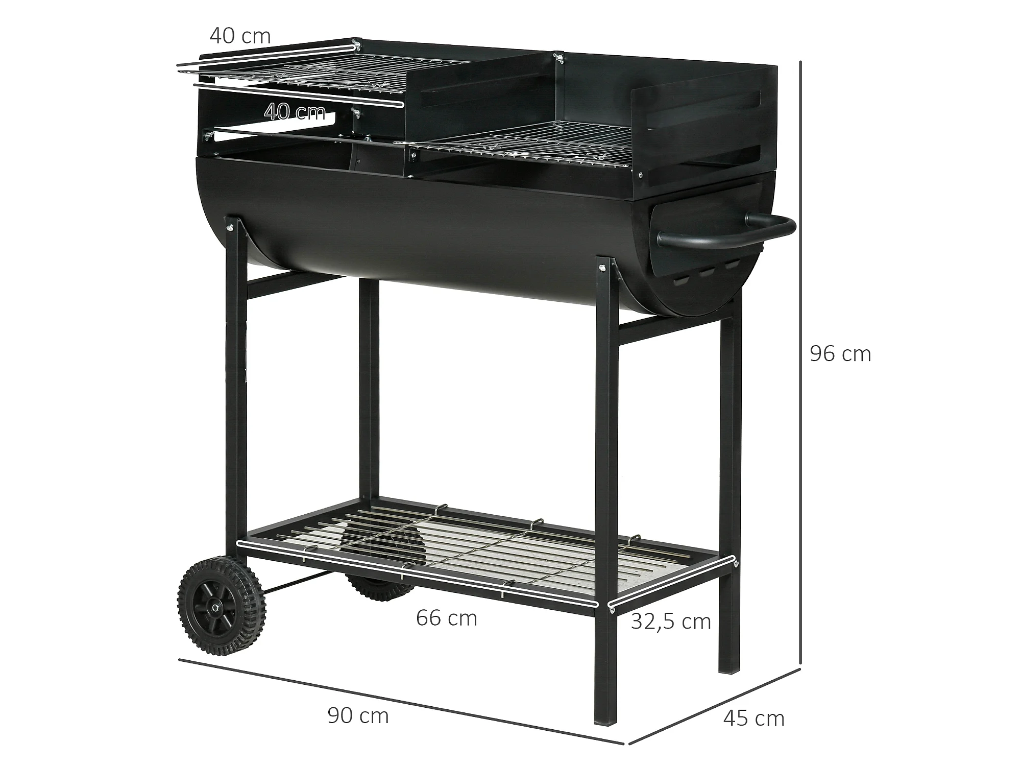 Barbacoa de carbón negro 90x45x96 cm Outsunny