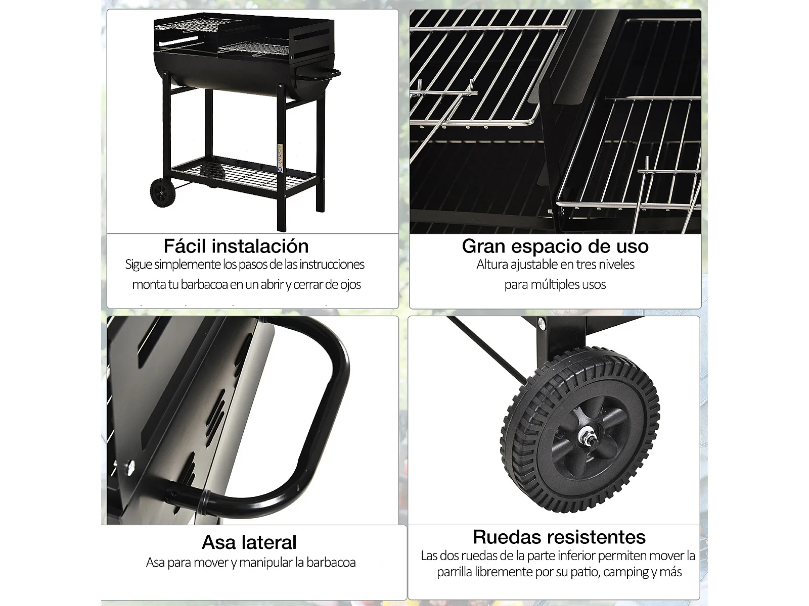Barbacoa de carbón negro 124x53x104 cm Outsunny