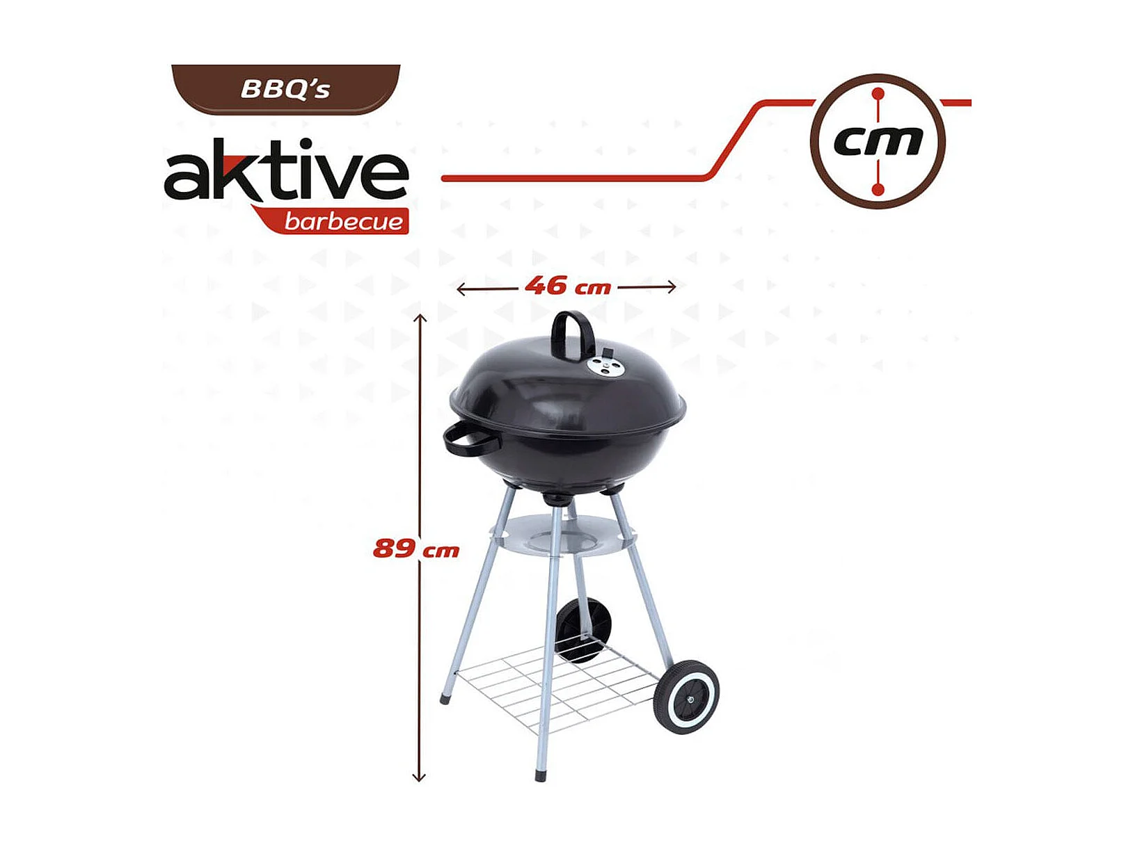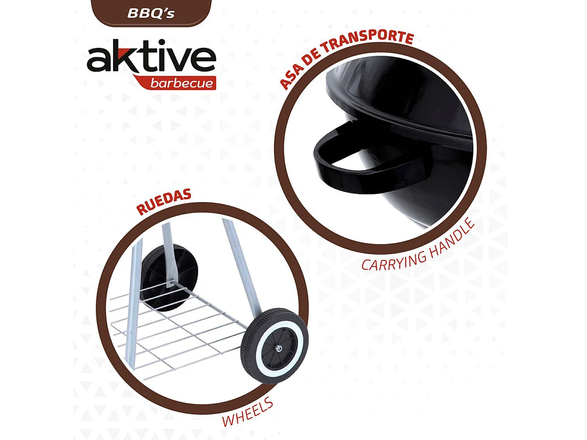 Barbacoa de carbón Aktive con tapa+ruedas negro Ø57x86 cm