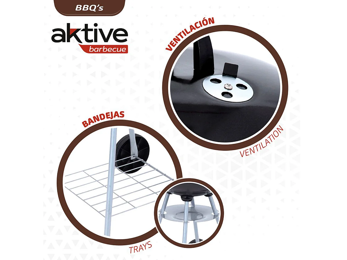 Barbacoa de carbón Aktive Barbecue 1 parrilla 4 alturas inox