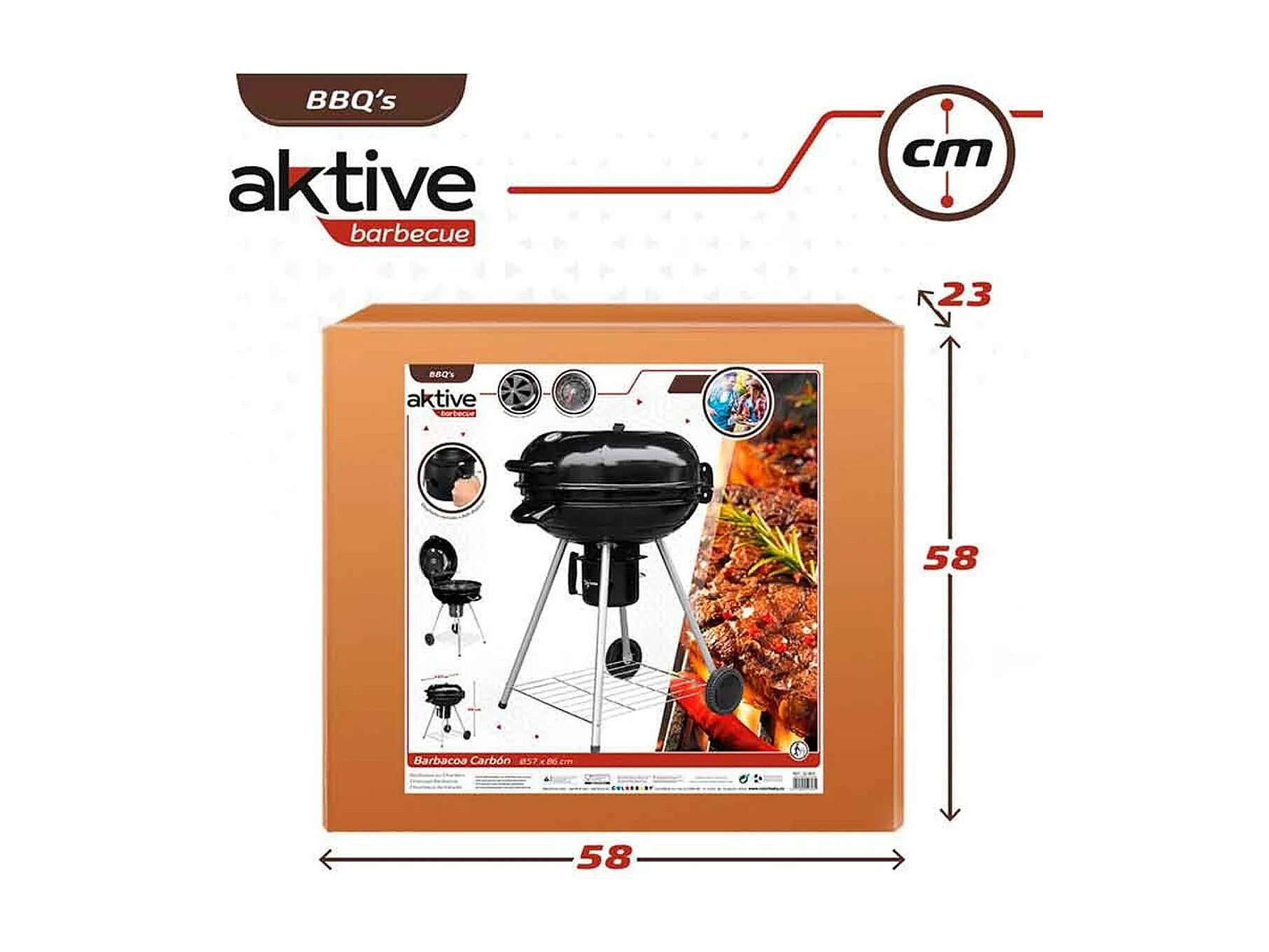 Barbacoa de carbón Aktive con tapa+ruedas negro Ø57x86 cm