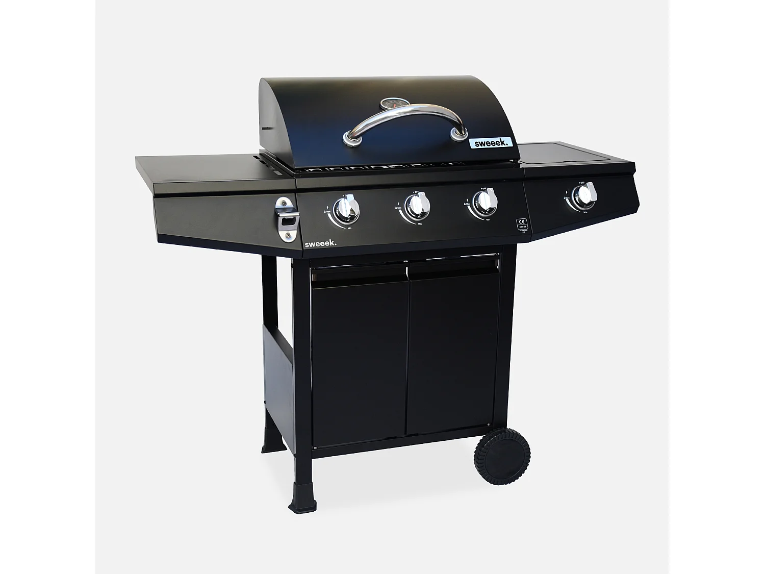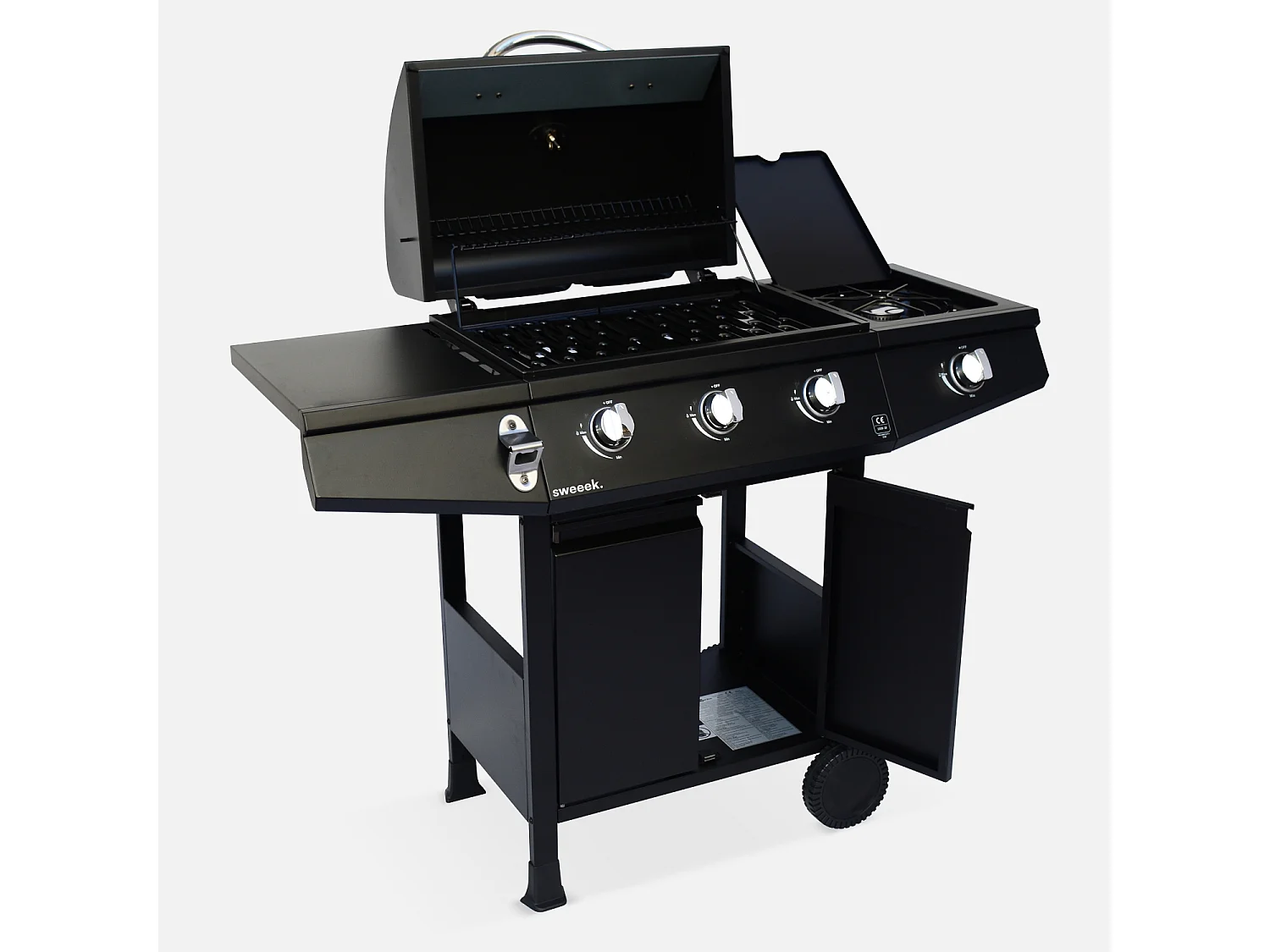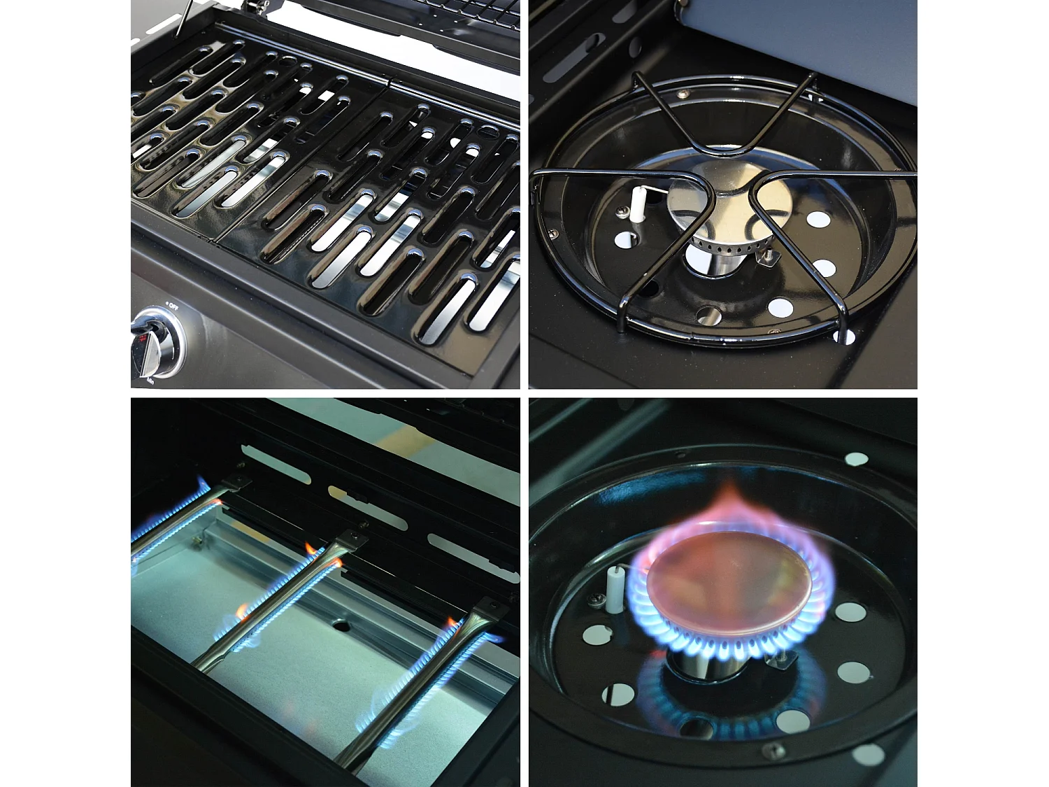 Barbacoa de gas con 3 quemadores y 1 quemador lateral negro