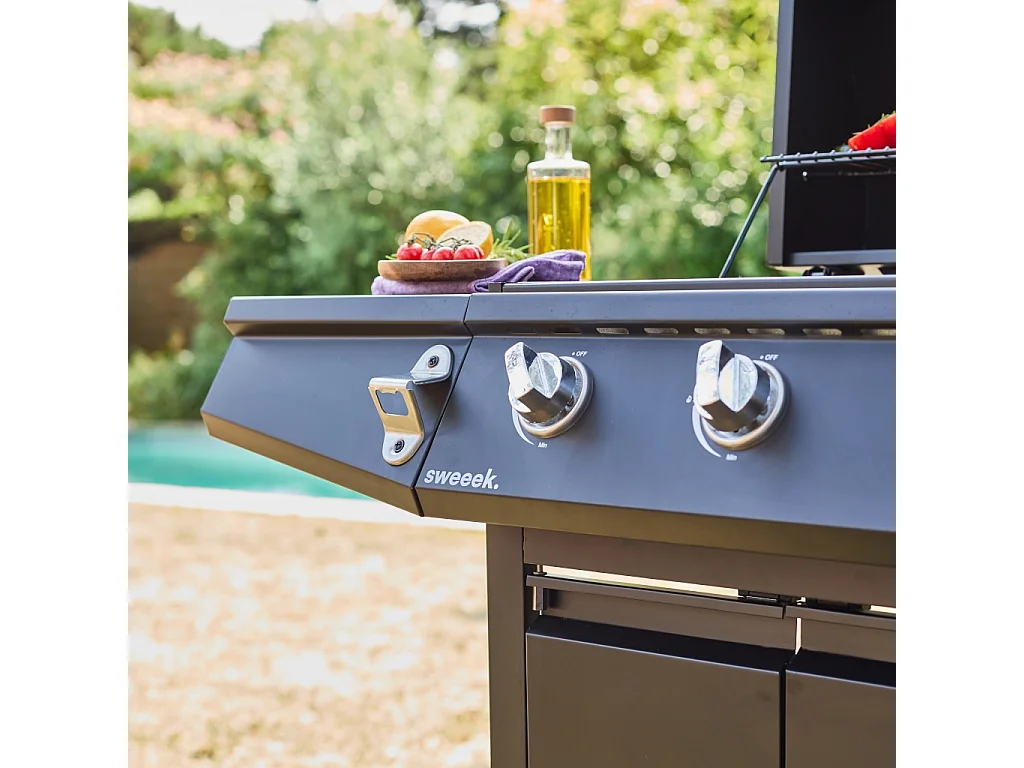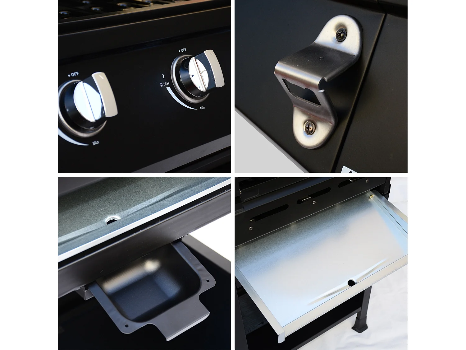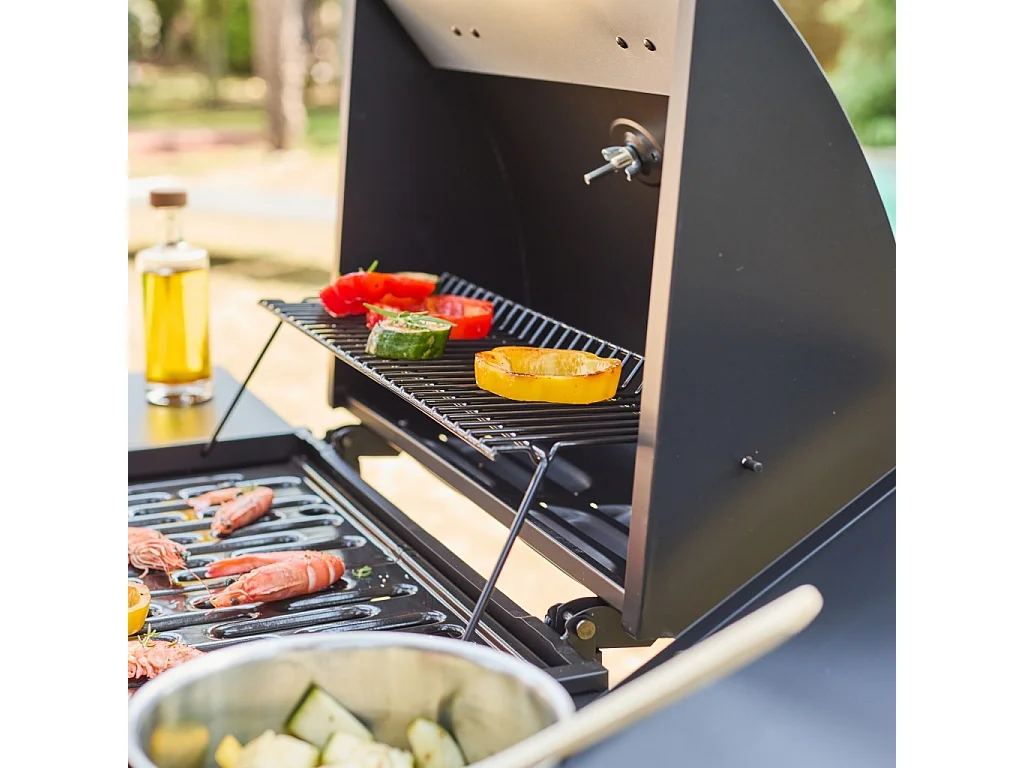Barbacoa de gas con 3 quemadores y 1 quemador lateral negro