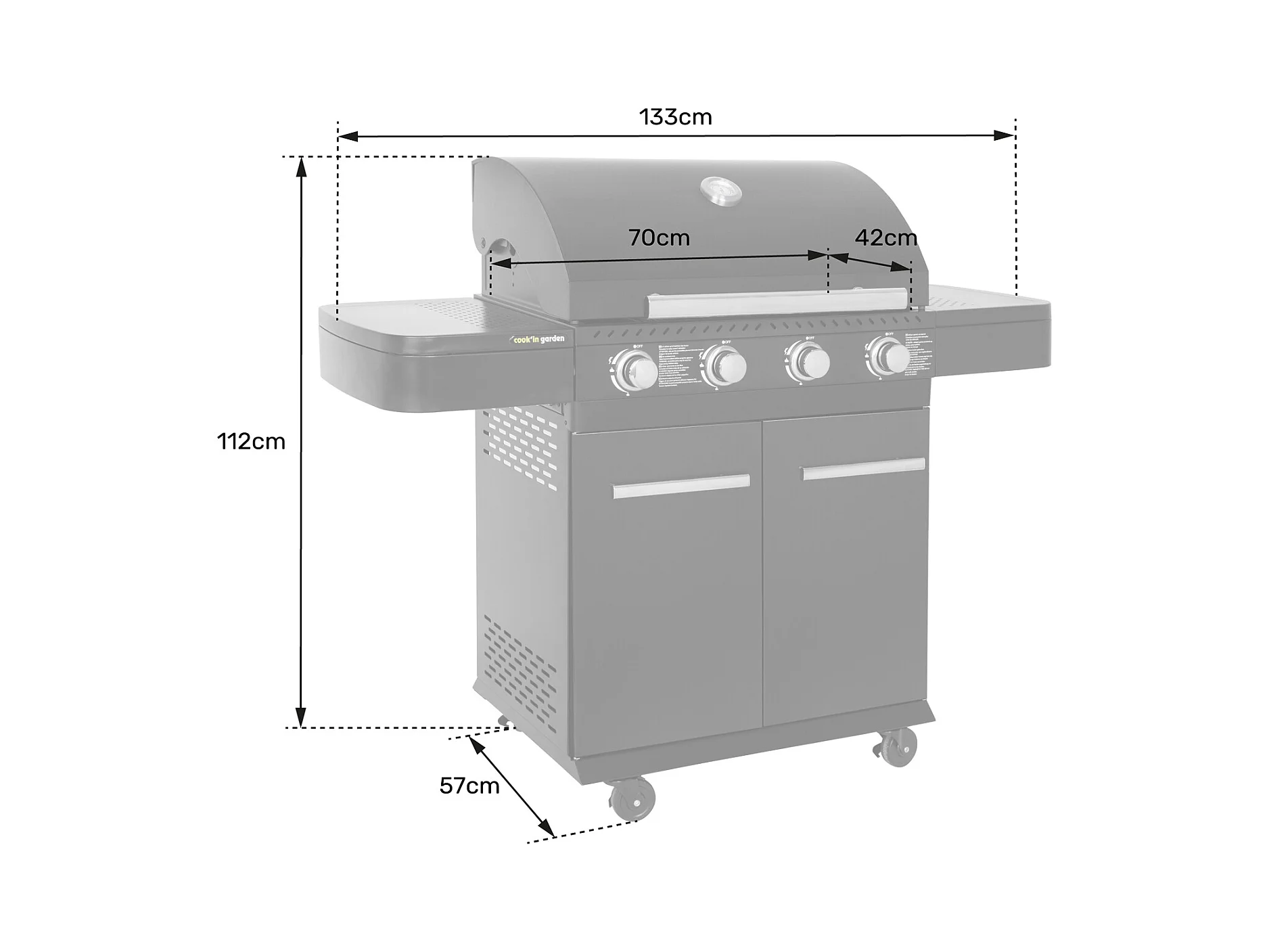 Barbacoa de gas FYRA con termómetro - 4 quemadores - COOK'IN GARDEN